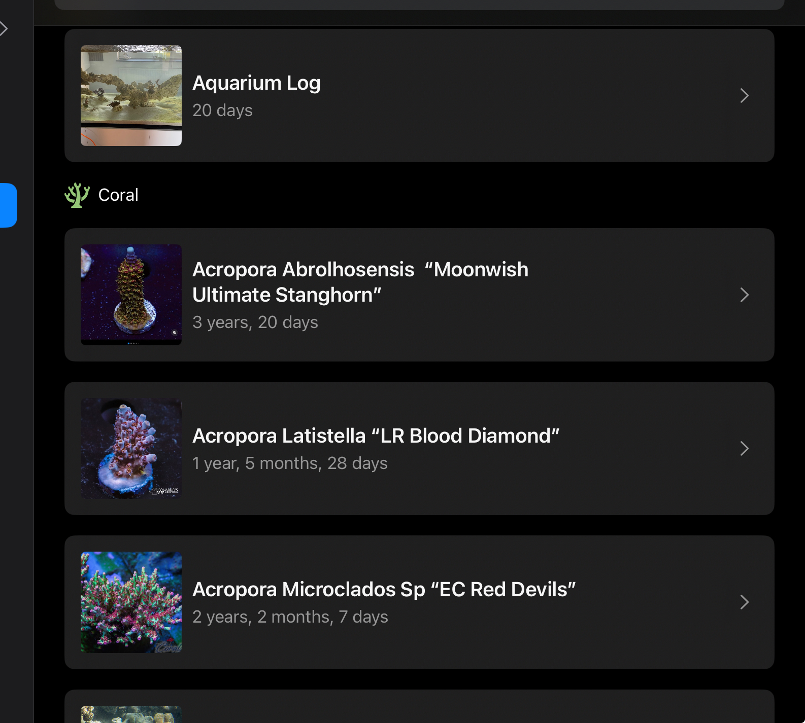 Har en acro, muligvis en Bali shortcake (en latistella formentlig), der netop lavede en lang gren. Den var hvid i omkring 6 mdr, så længe så jeg faktisk spekulerede over om den mon var gået til. Men resten af korallen så fin ud, så jeg lod den være. Nu er den begyndt at få farve og coralites op ad grenen. Så de skal gerne bare have tid. Er korallen sund og rask, skal det nok komme.
