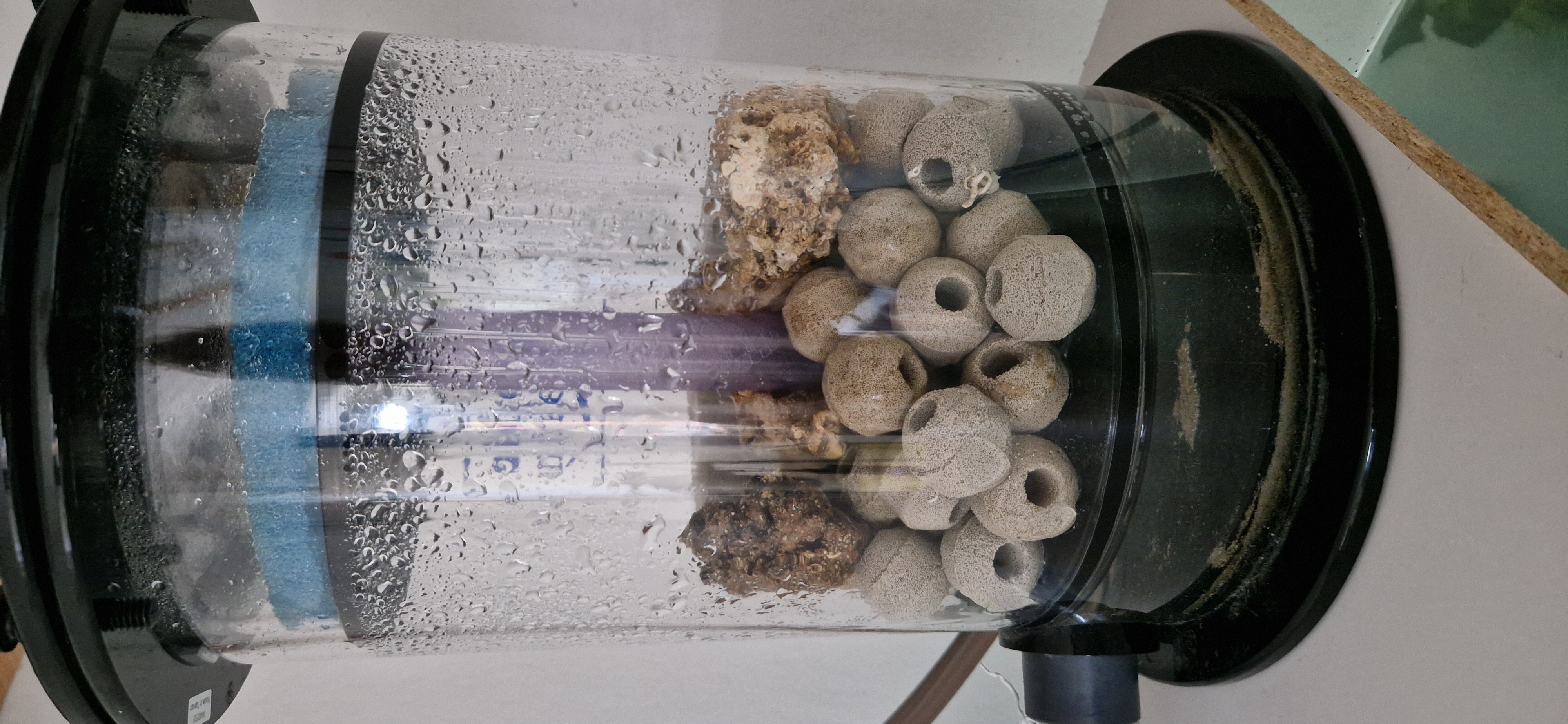Så der er et rislefilter placeret over akvariet. Det indeholder biomedia, sten og NP Bacto Tricks og aktivt kul hvis jeg synes vandet trænger til polering.