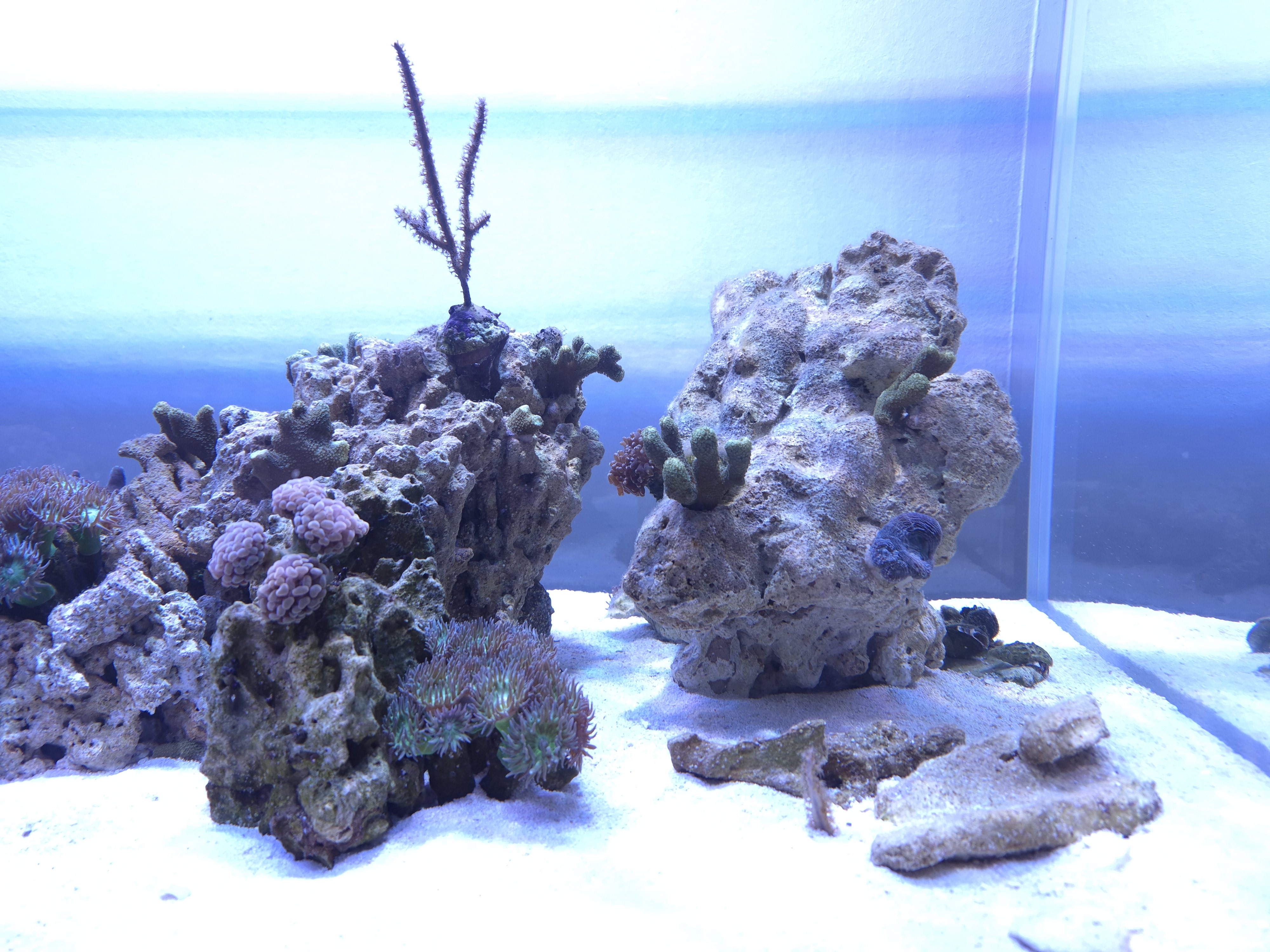Ingen regnebuekoraller er tilladt, så jeg nyder at lege med formerne på korallerne istedet og deres placeringer ifht hinanden. Lidt ligesom i ferskvandsaquascaping.