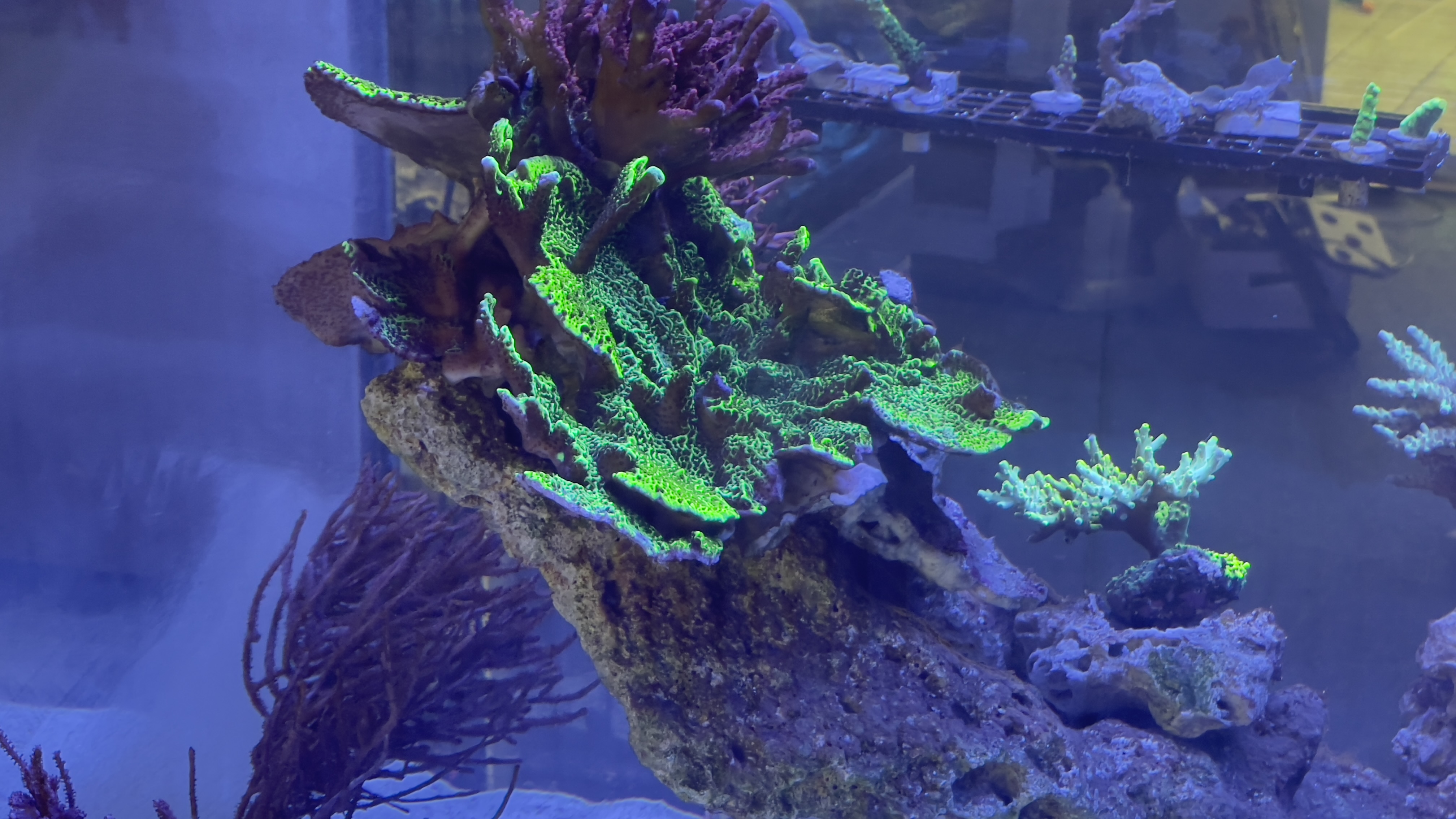 Koraller er ikke så glade for de nye placeringer, og PE er begrænset på acroporaerne i det nye setup, men synlige.