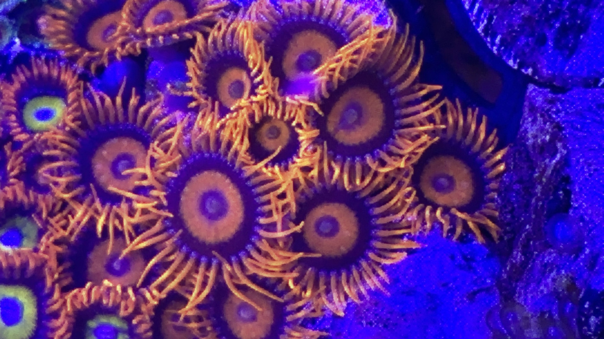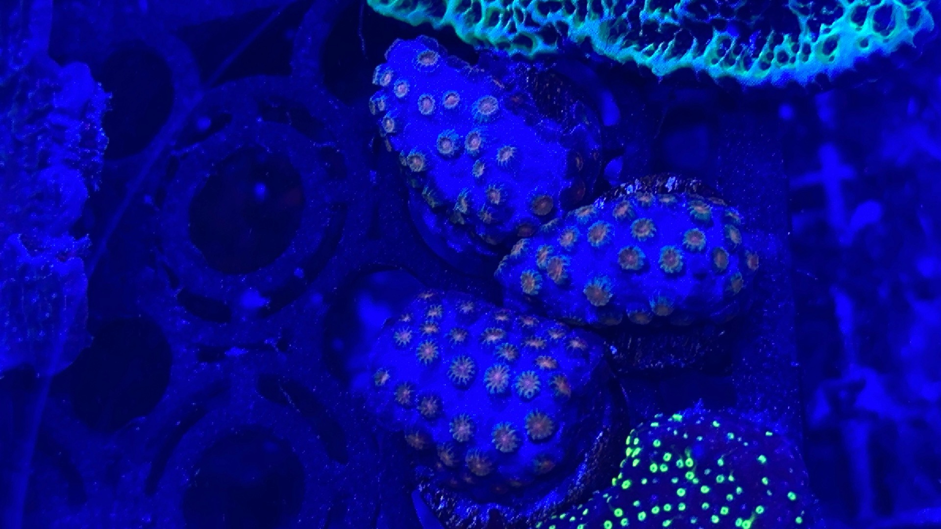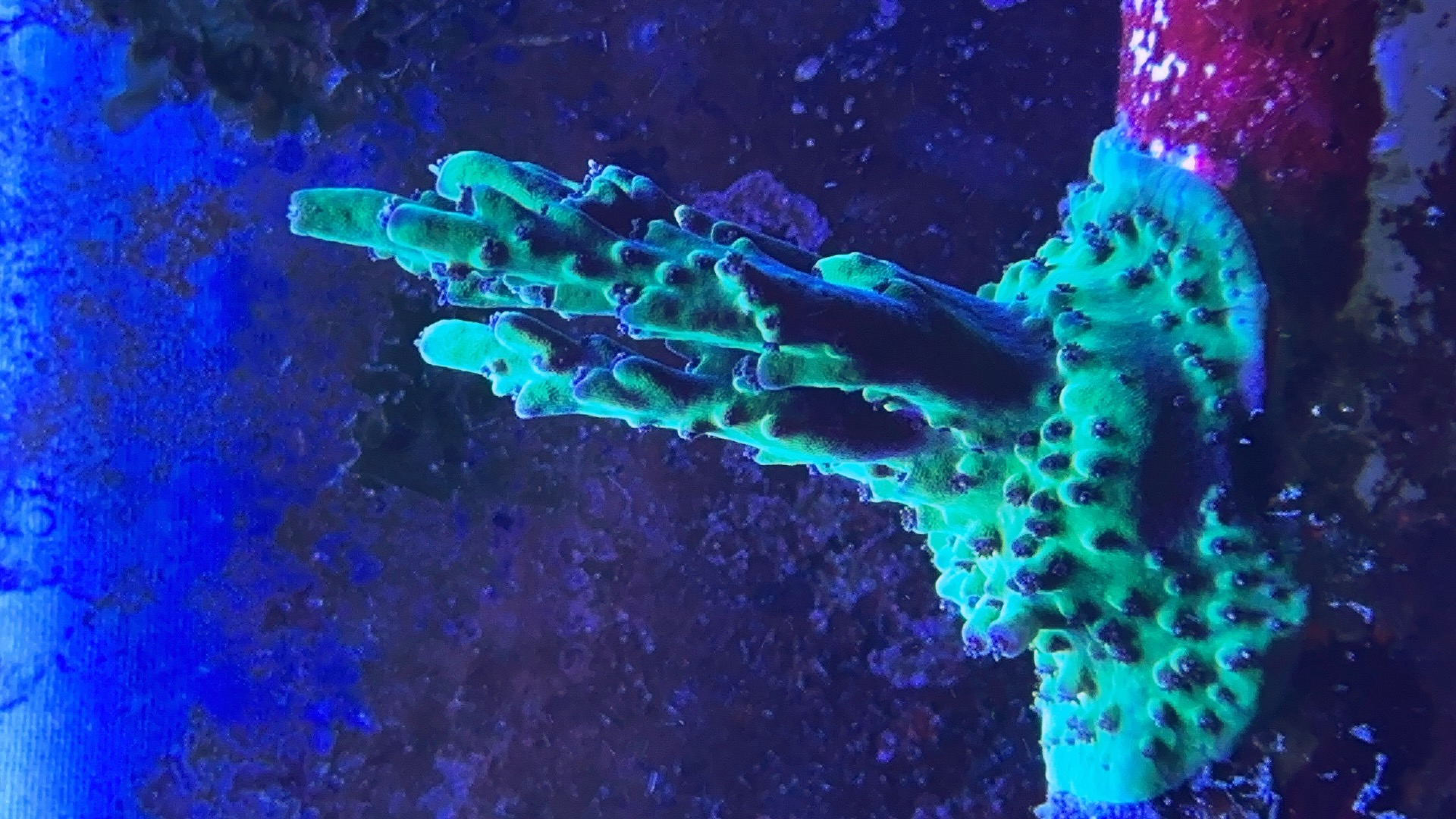 Der er stadig flotte store frags af Alveopora Ultra toxic green med lyserød center