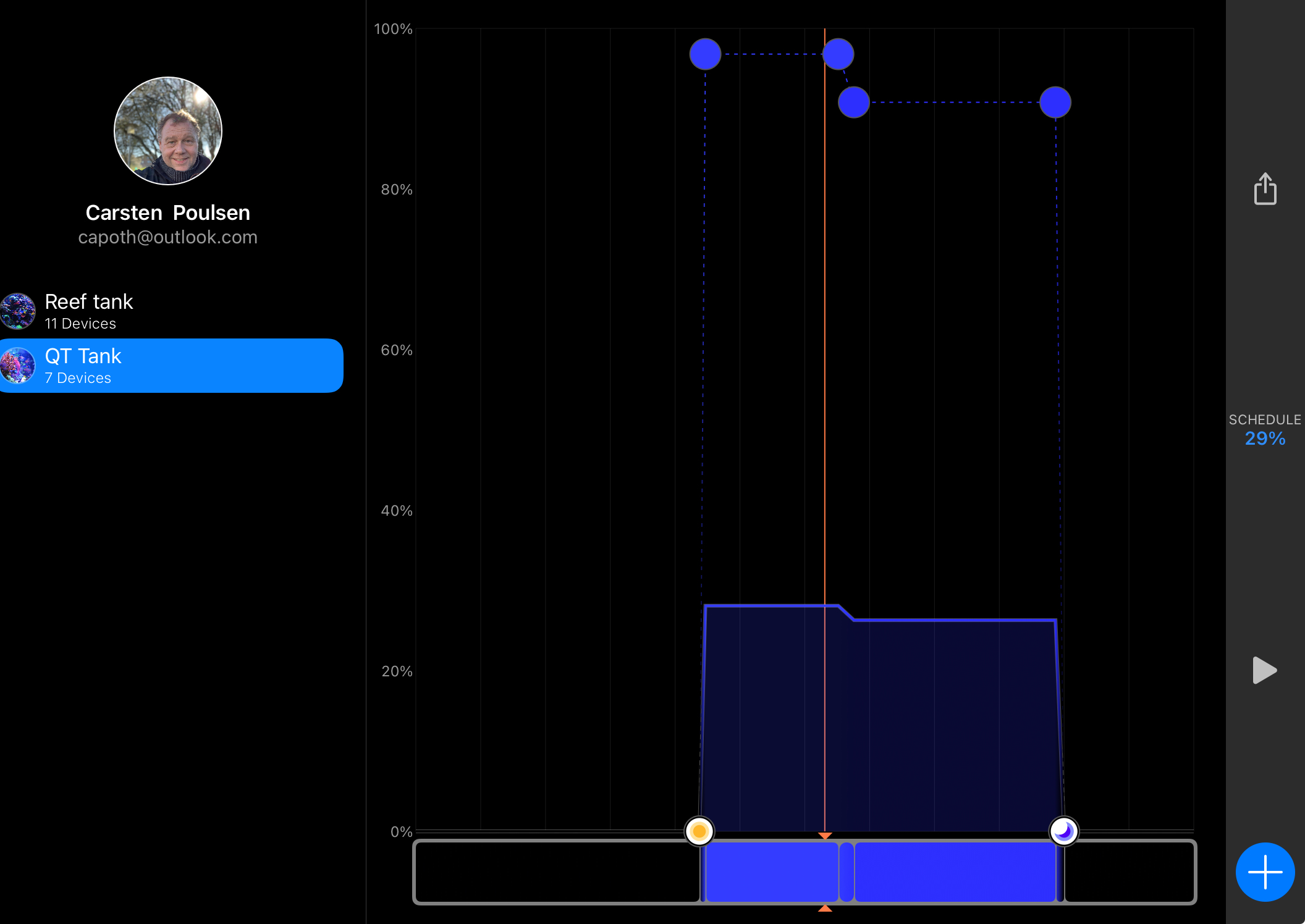 Har skruet ned for lyset, da jeg oplever korallerne reagere negativt på så meget anderledes lys.