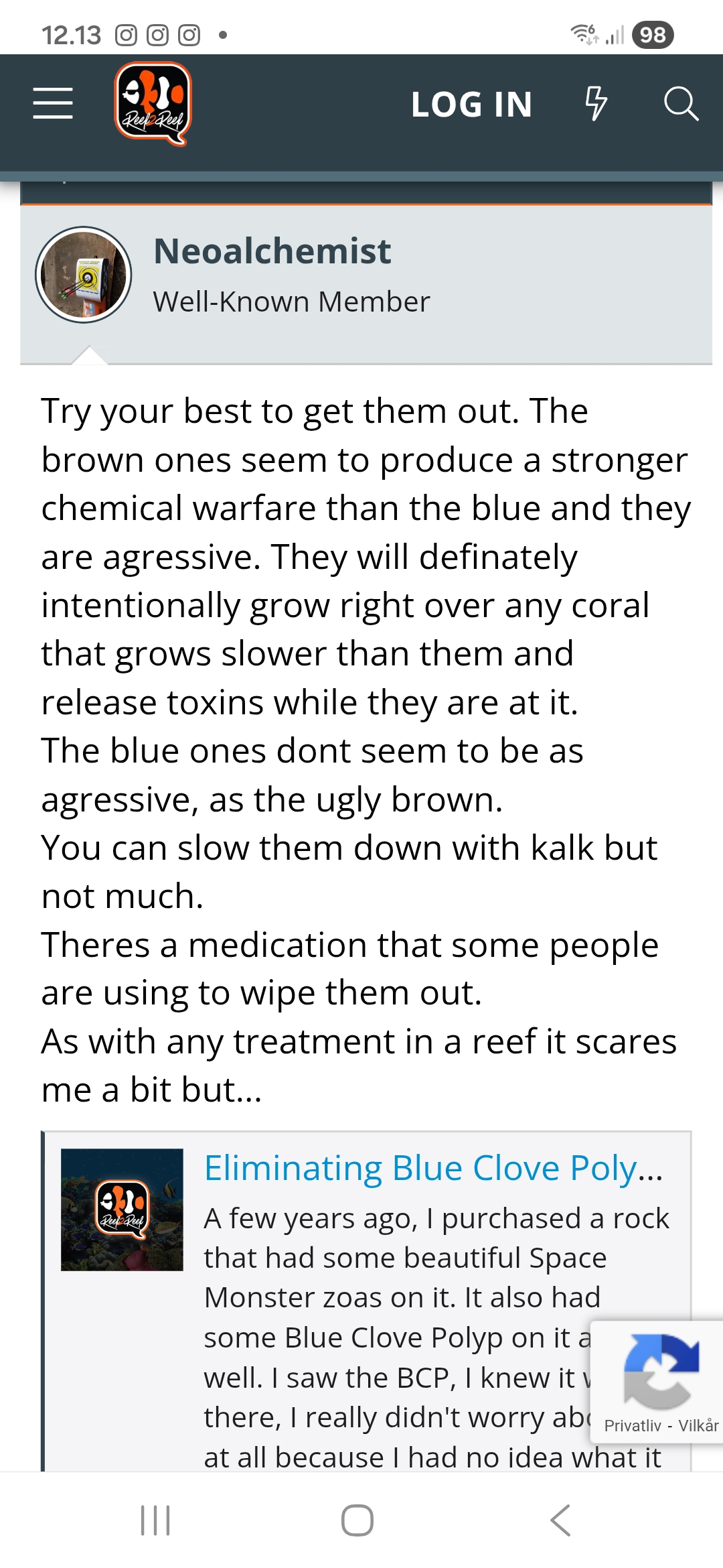 Engelquist skrev: søn 28. dec 2025 10:18 Der er begyndt at brede sig en type små stjernepolypper, på et par af stenene. De ser ikke ud til at genere korallerne, men jeg synes ikke de er så dekorative- og så tager de plads fra kalk algerne, som jeg hellere vil have.