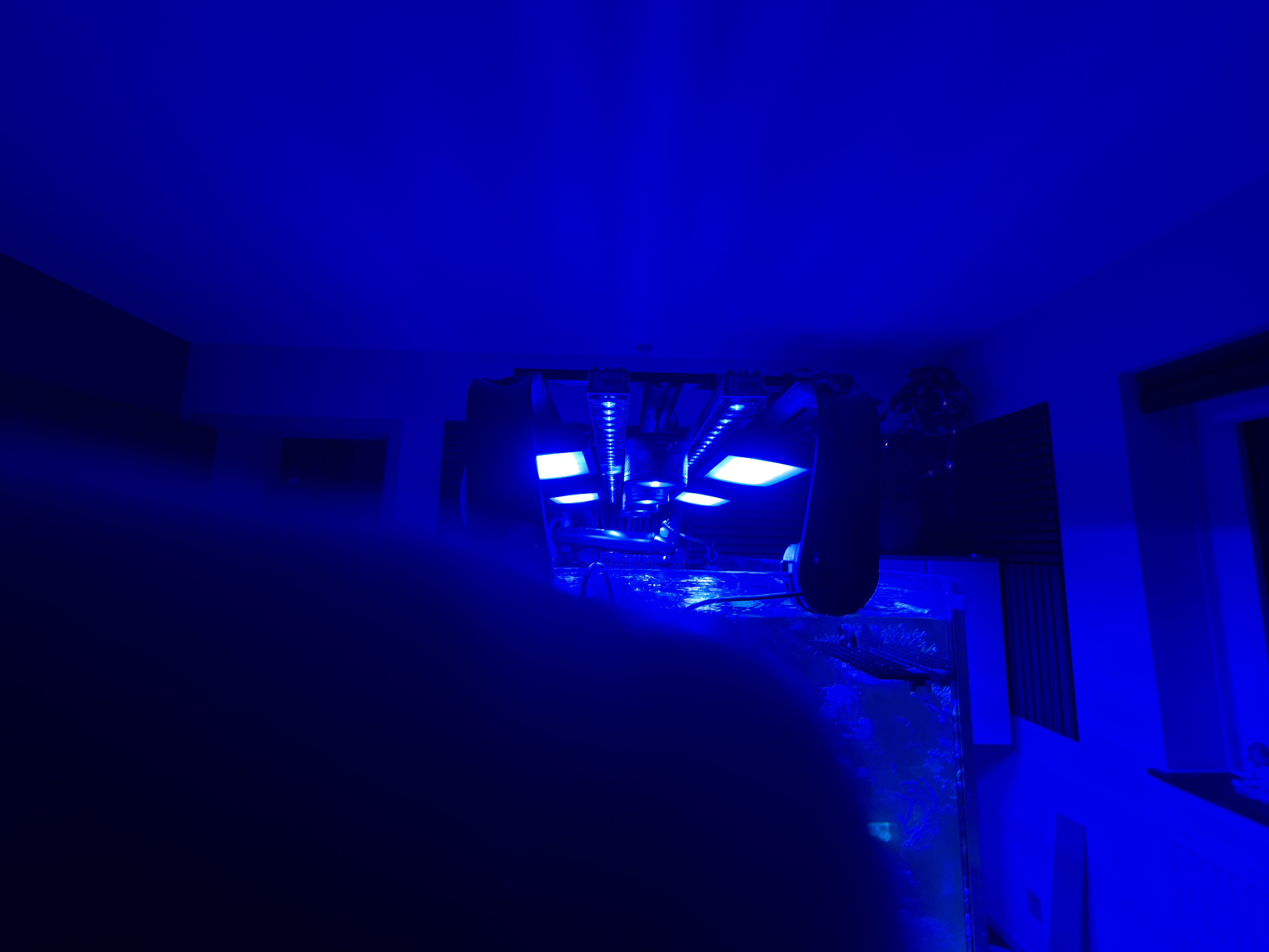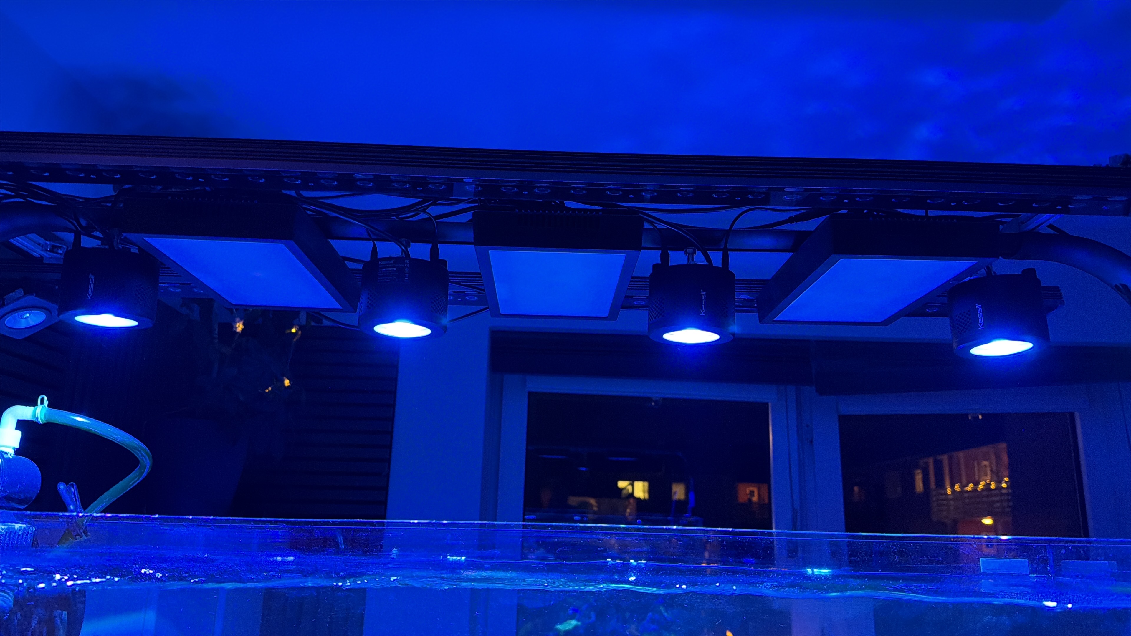 Fik lavet så de står skråt ned mod vandet og giver ufattelig dog spredning, samt support lys fra Kessil og orphek. Har ikke målt endnu hvad det tilsammen giver. Kører igen klimatisering på lyset Denne alge som jeg har er virkelig irriterende. Gør mit vand grumset og uklart, men efter jeg kører med uv nu aftager de langsom. Har ikke set den type alge før i opstarts fasen