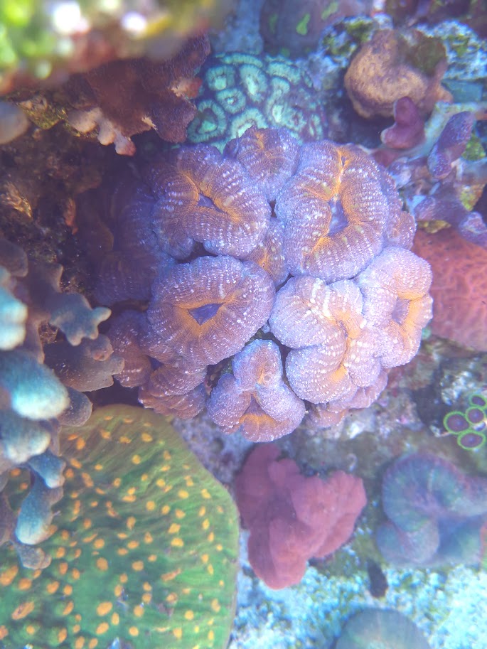 Lobophyllia garden. Udfordringen er at "lobophylliaerne" er håbløst u-dokumenterede i deres genetik og det jeg køber som "