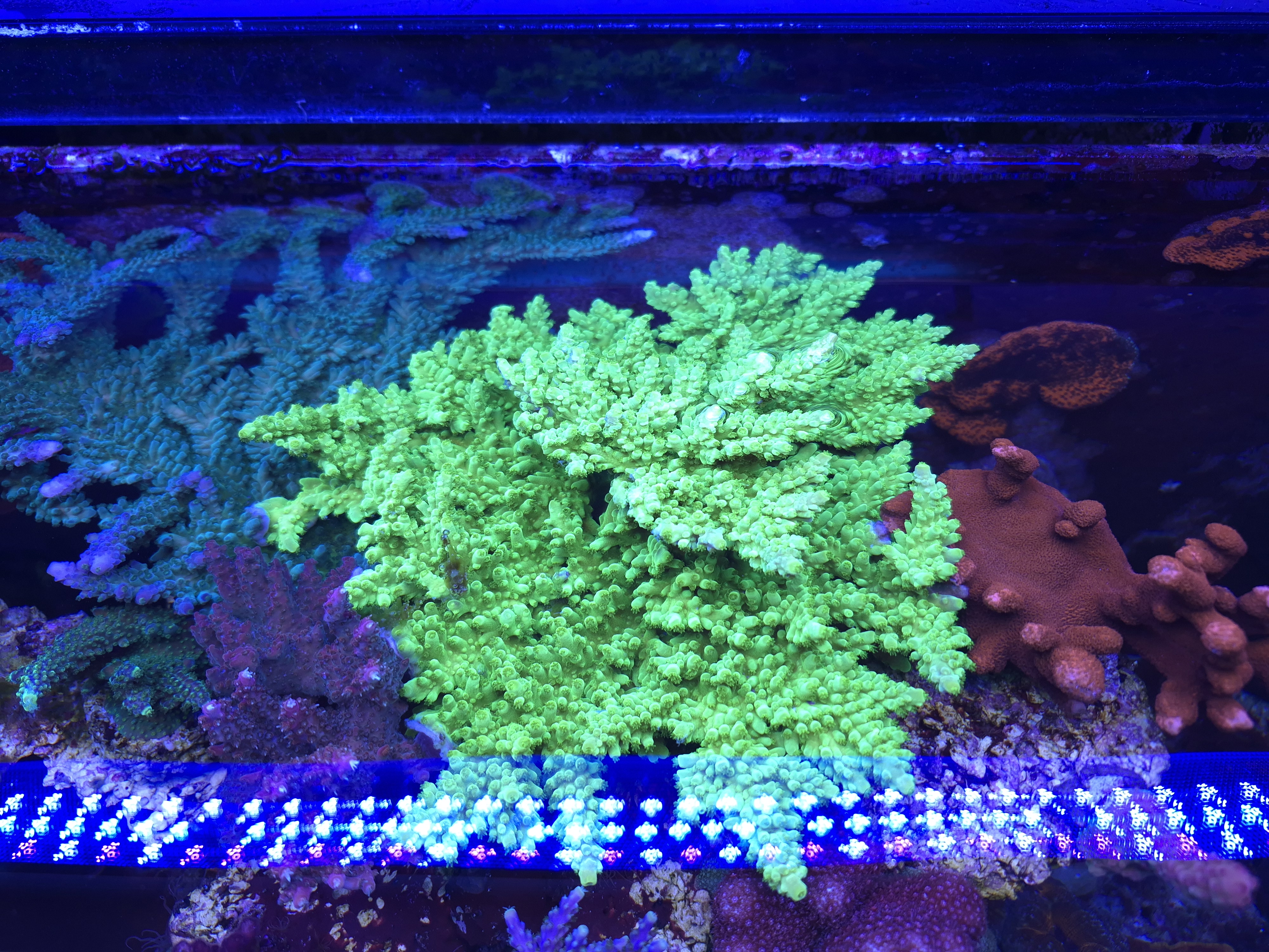 Acropora Willisae ser bedst ud. Så jeg har fragget et stykke af og placeret i et absolut angreb af