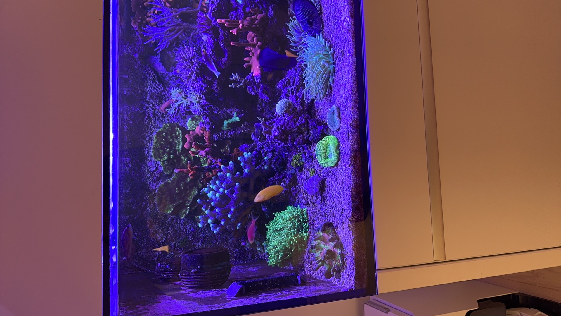 Kom pludselig på at måle mit salt indhold og fandt ud af den var steget til 1.030 🤦🏻‍♂️ jeg har ikke skiftet vand i en evighed så havde ikke lige tænkt på at måle da det ikke er en del af min routine . Har ikke fået sendt en icp test afsted heller. Hver uge tænker jeg det bliver på mandag. Så når jeg det heller ik og som ugen går tænker jeg nu får jeg ikke svar denne uge alligevel så jeg venter til på mandag 😂