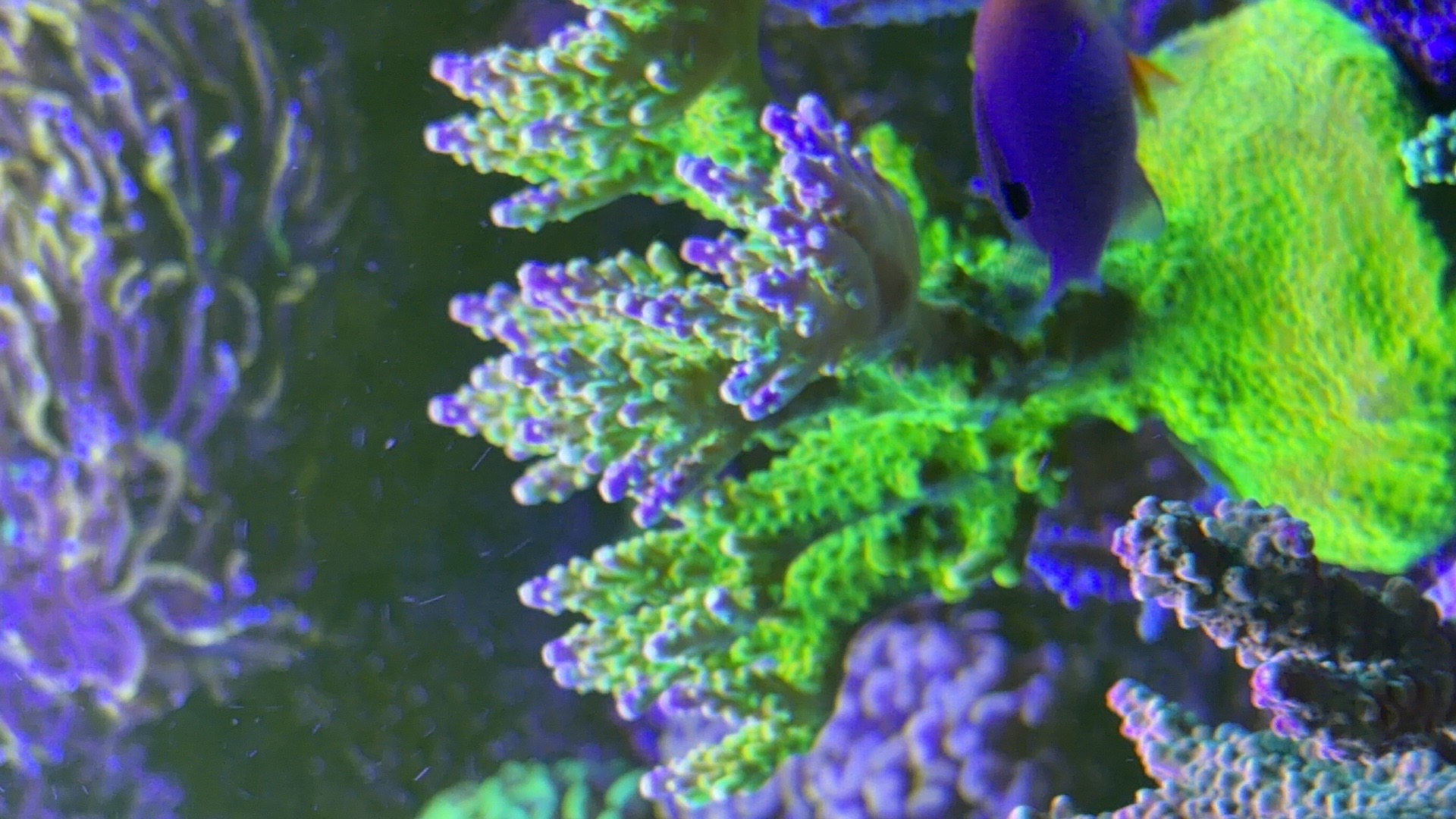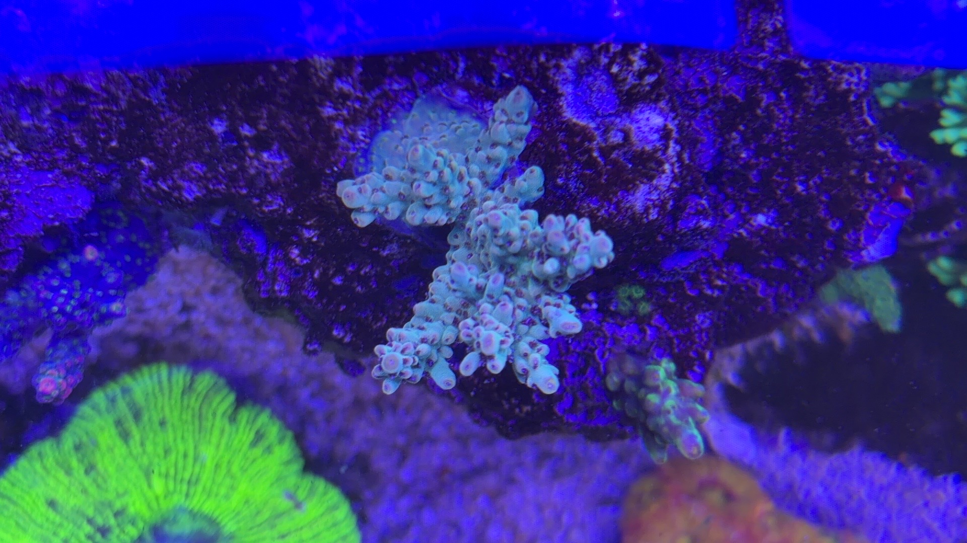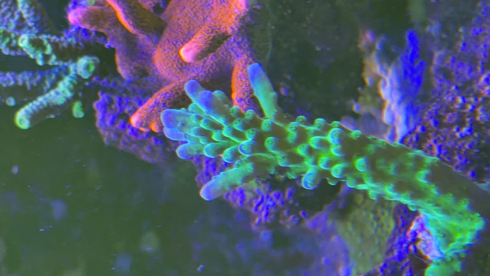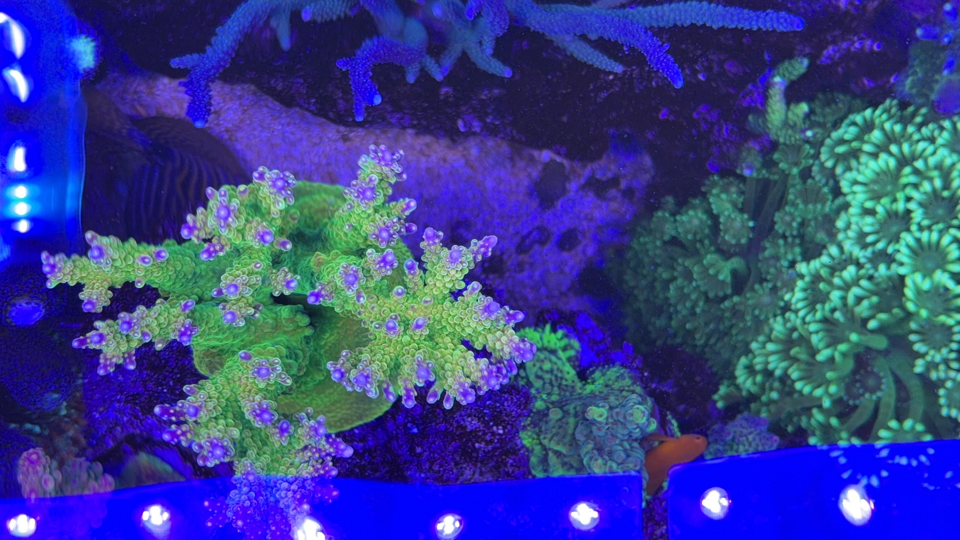 Nogle a mine acroporaer er begyndt at få bedre farver og polyp udfoldelse om natten efter jeg opdagede min bummert med den forhøjet salt.