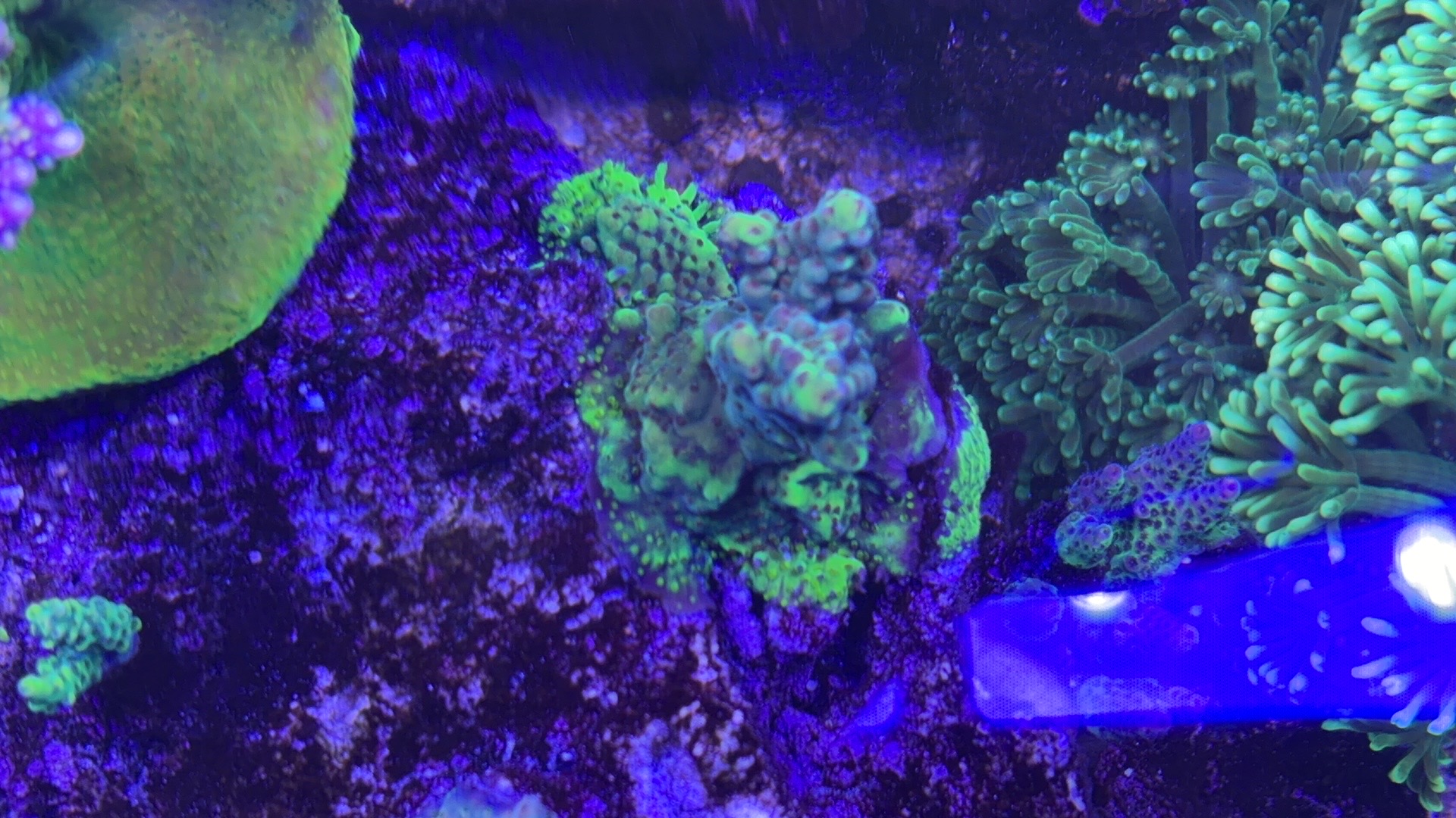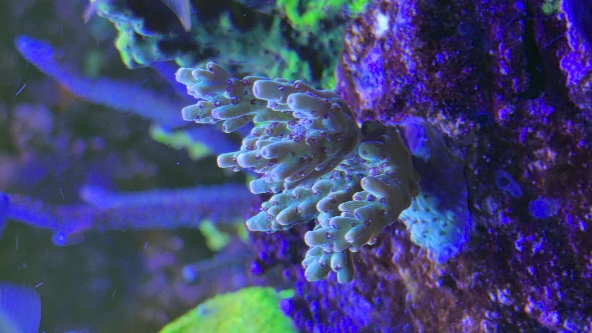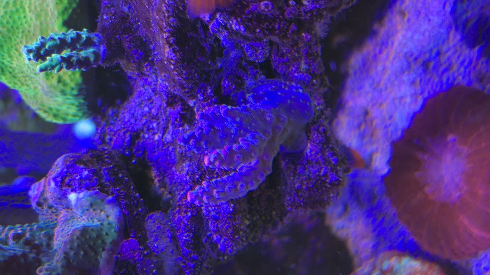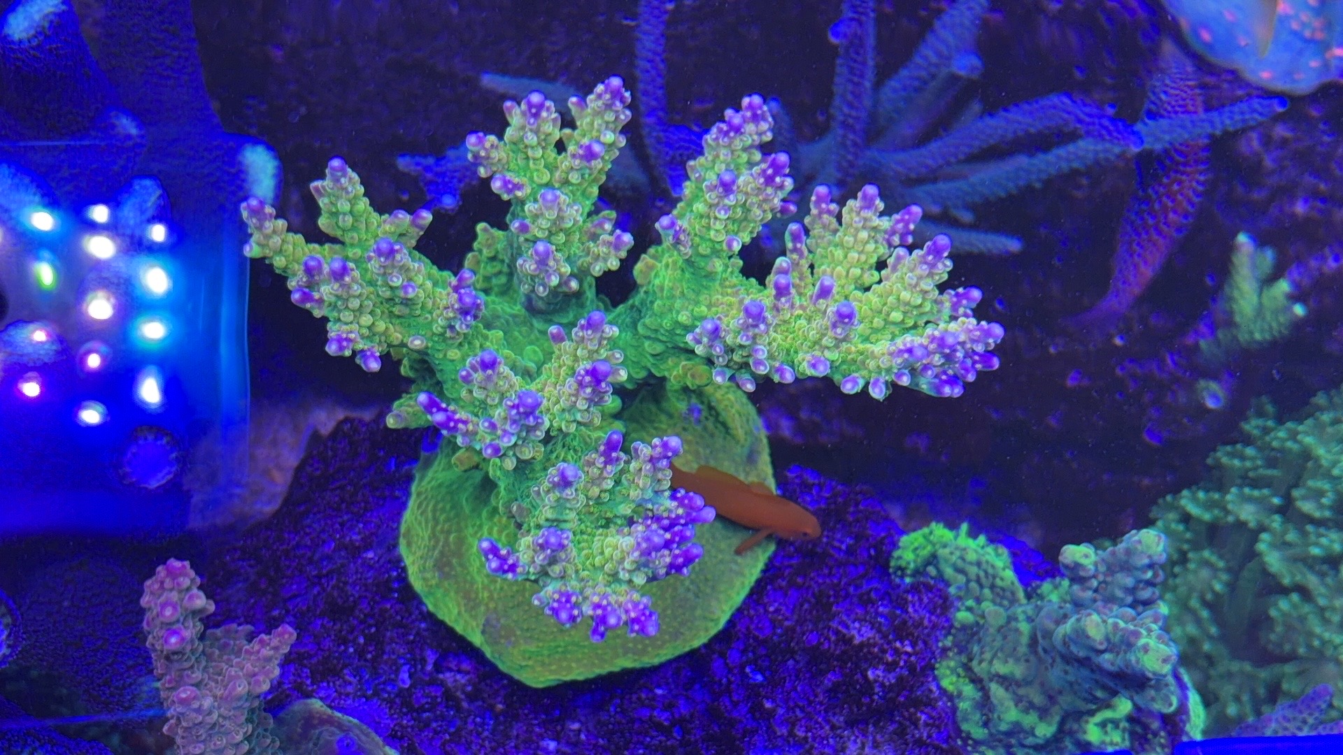 Nogle a mine acroporaer er begyndt at få bedre farver og polyp udfoldelse om natten efter jeg opdagede min bummert med den forhøjet salt.