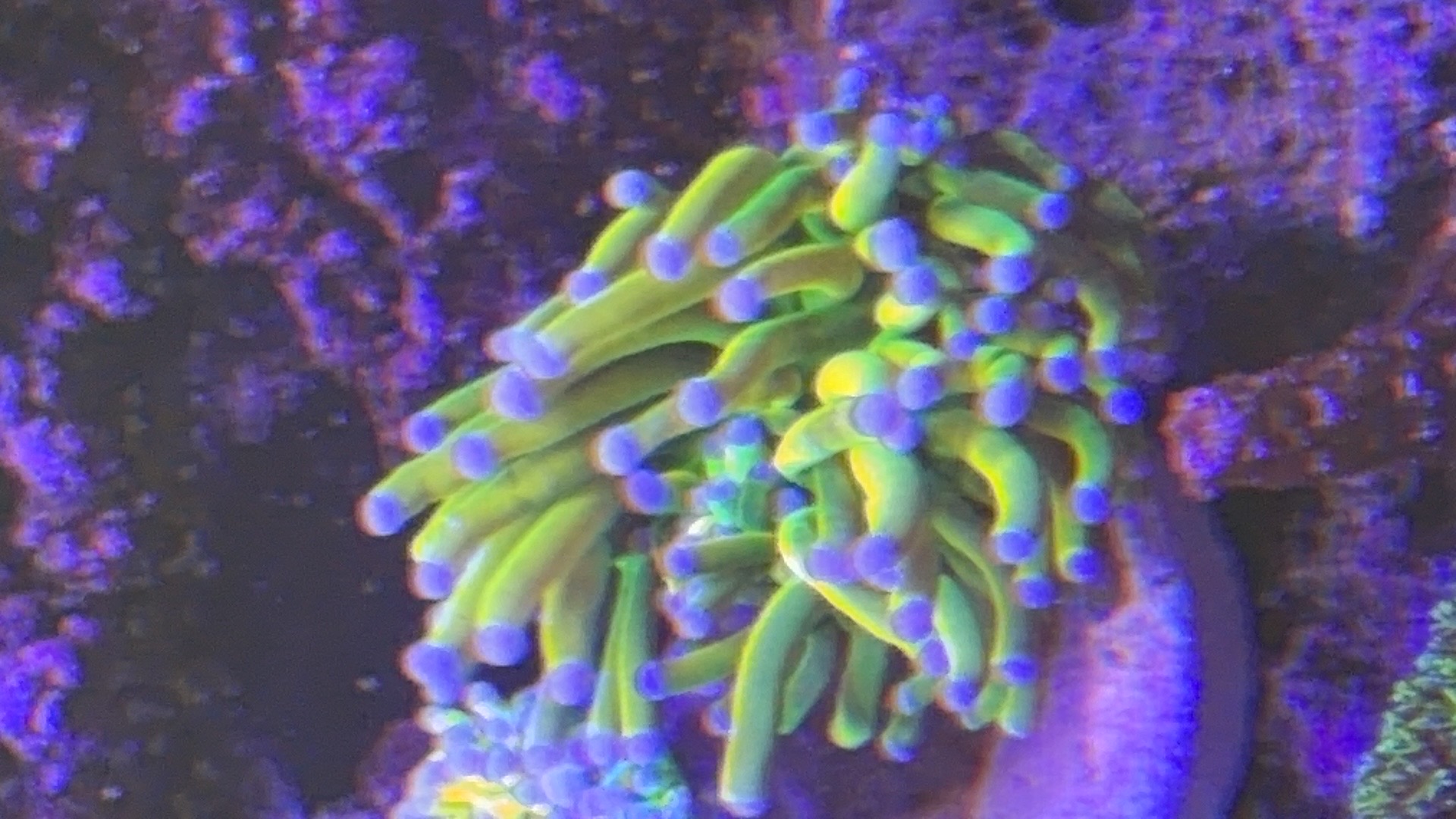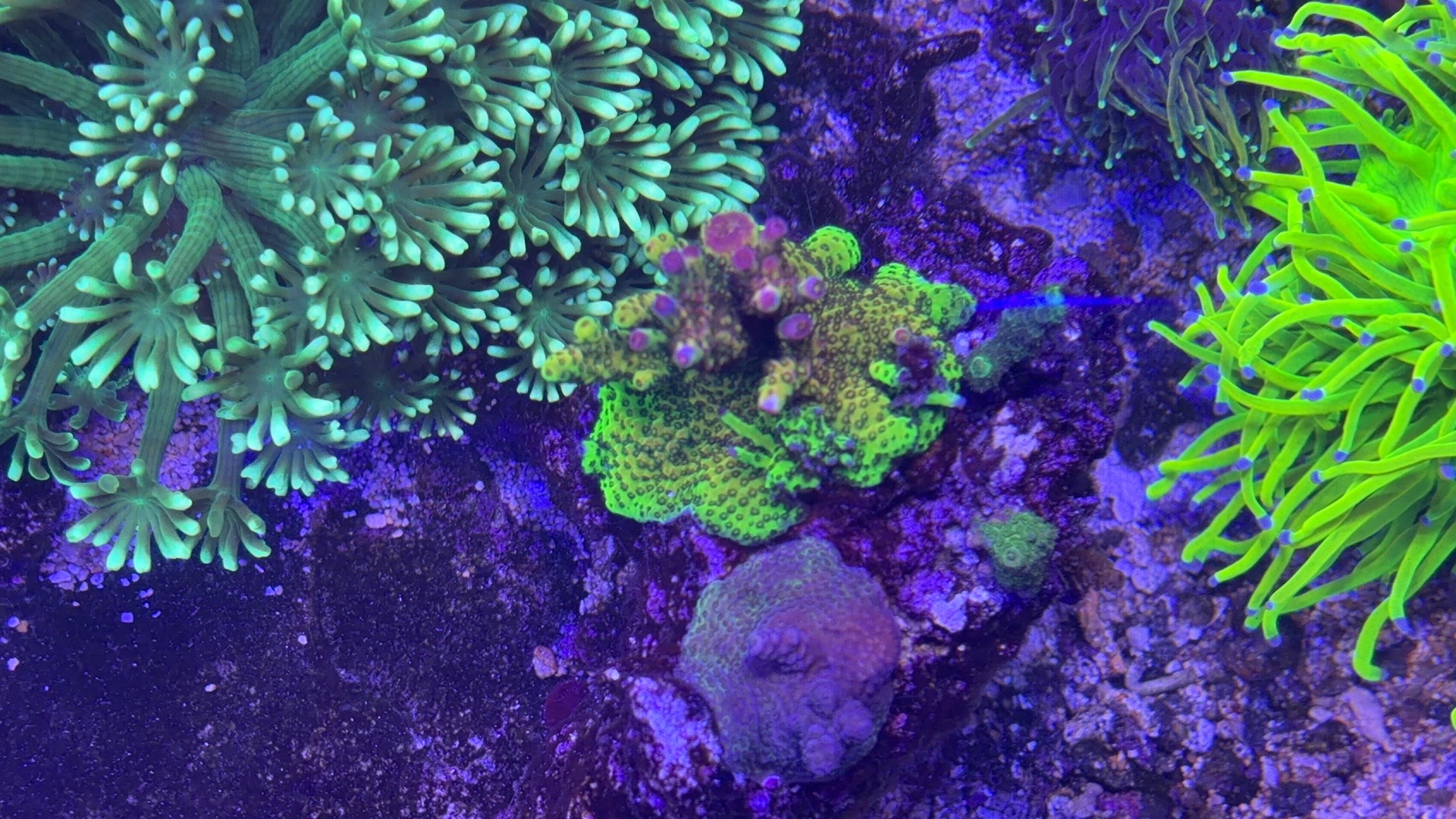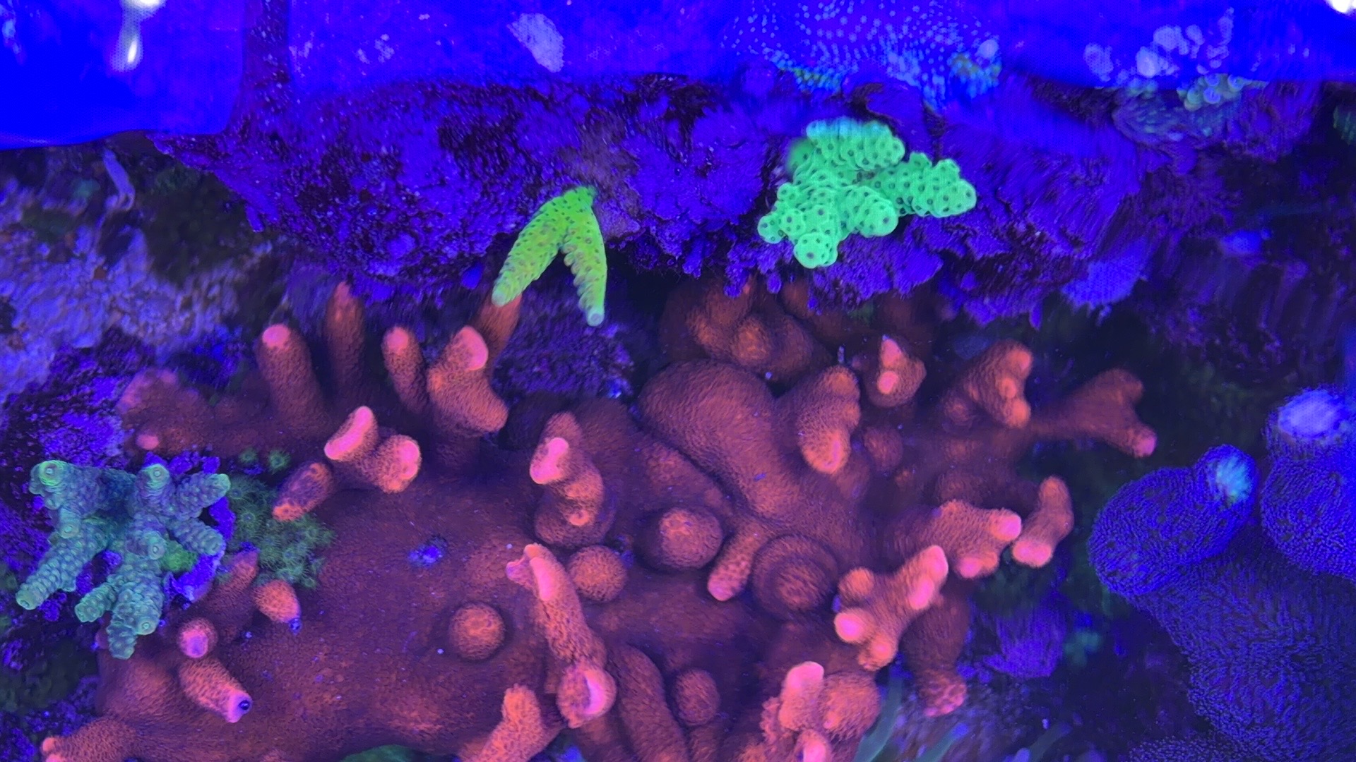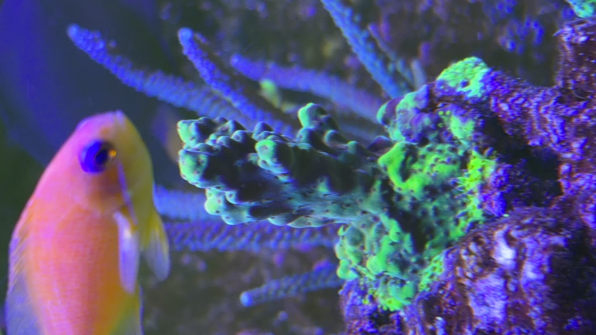 Nogle a mine acroporaer er begyndt at få bedre farver og polyp udfoldelse om natten efter jeg opdagede min bummert med den forhøjet salt.