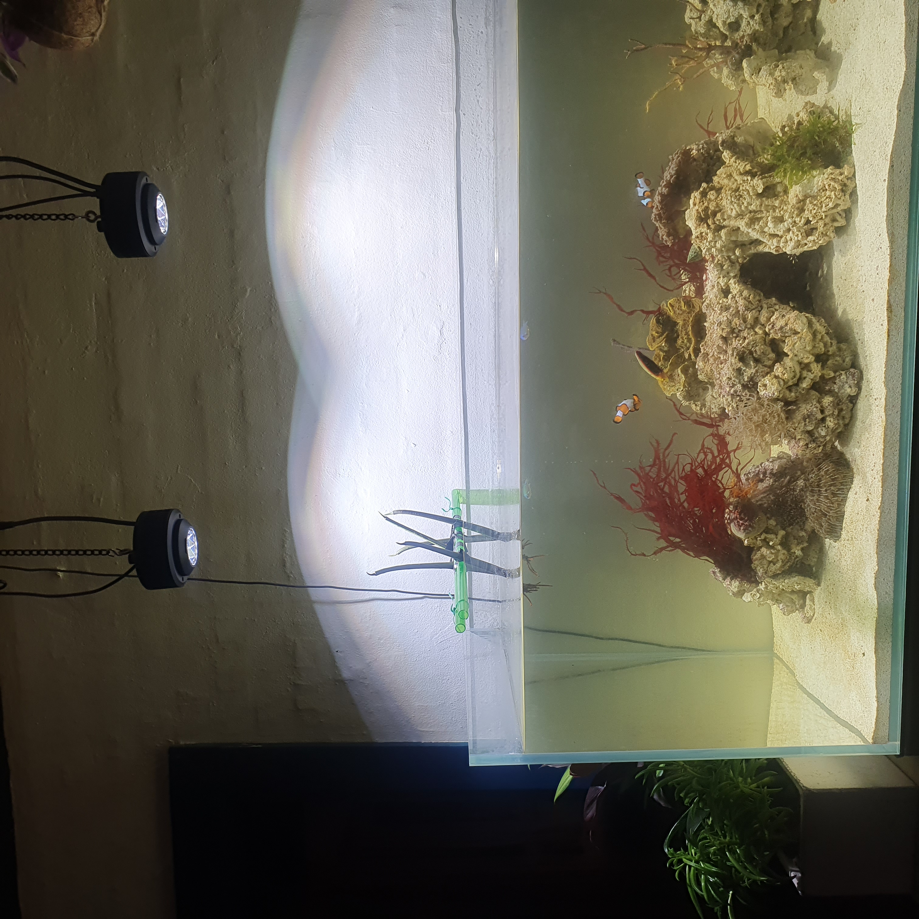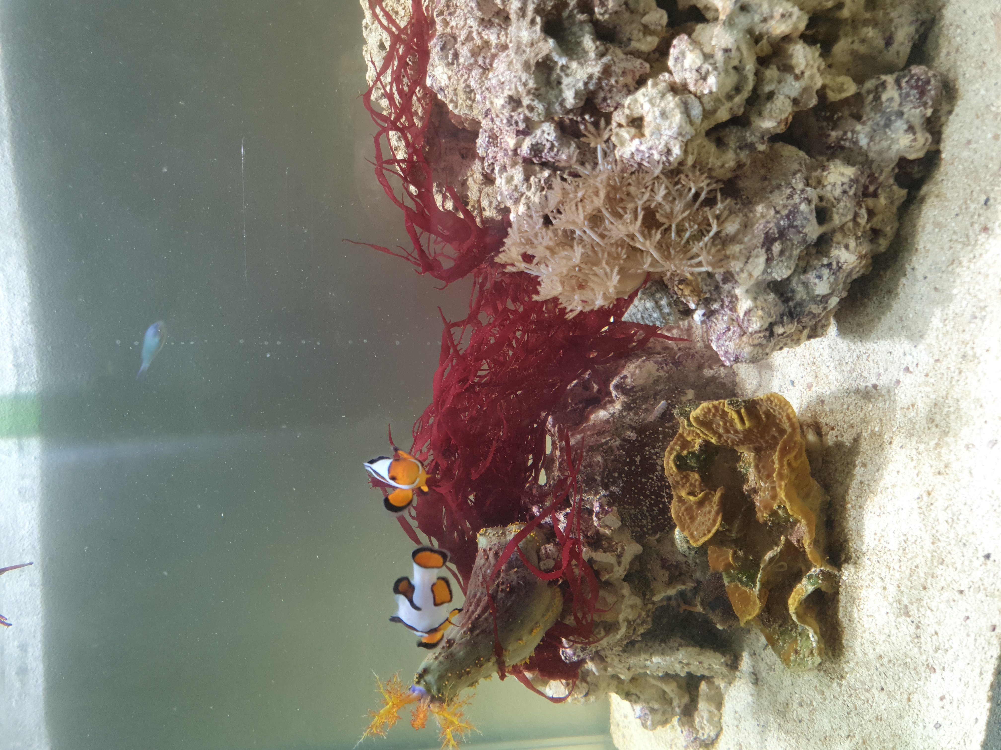 Jeg må sige at det er en kæmpe fornøjelse at lege med installeringen af maxspect 350 gyre pumperne. Den ene sidder vandret i toppen og den anden lodret. De er pænt oversized til mit ca 250-300 liters akvarie og køre kun op til max 30% (6000l/t)på den vandrette og kun 10%(2000l/t) på den lodrette. Så kan sandet blive bare nogenlunde liggende