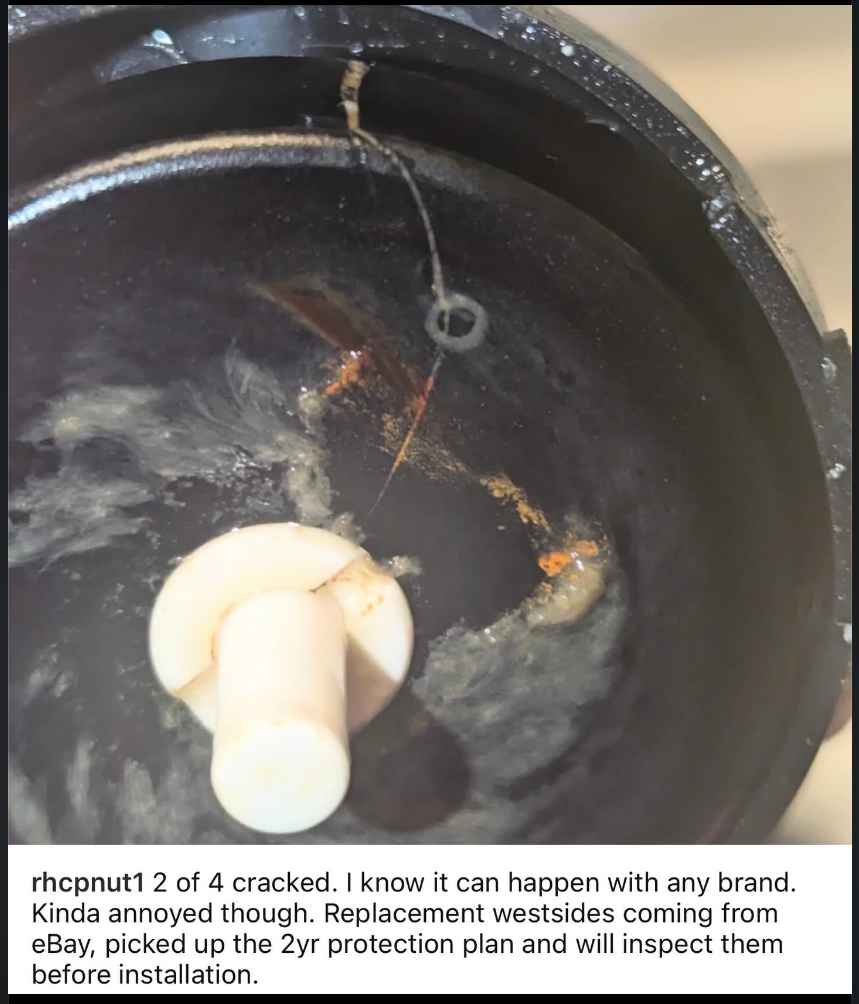 Øv en af mine Vortech MP 40 er gået i stykker. Det er den lille hvide keramikskive i webside, der er gået.