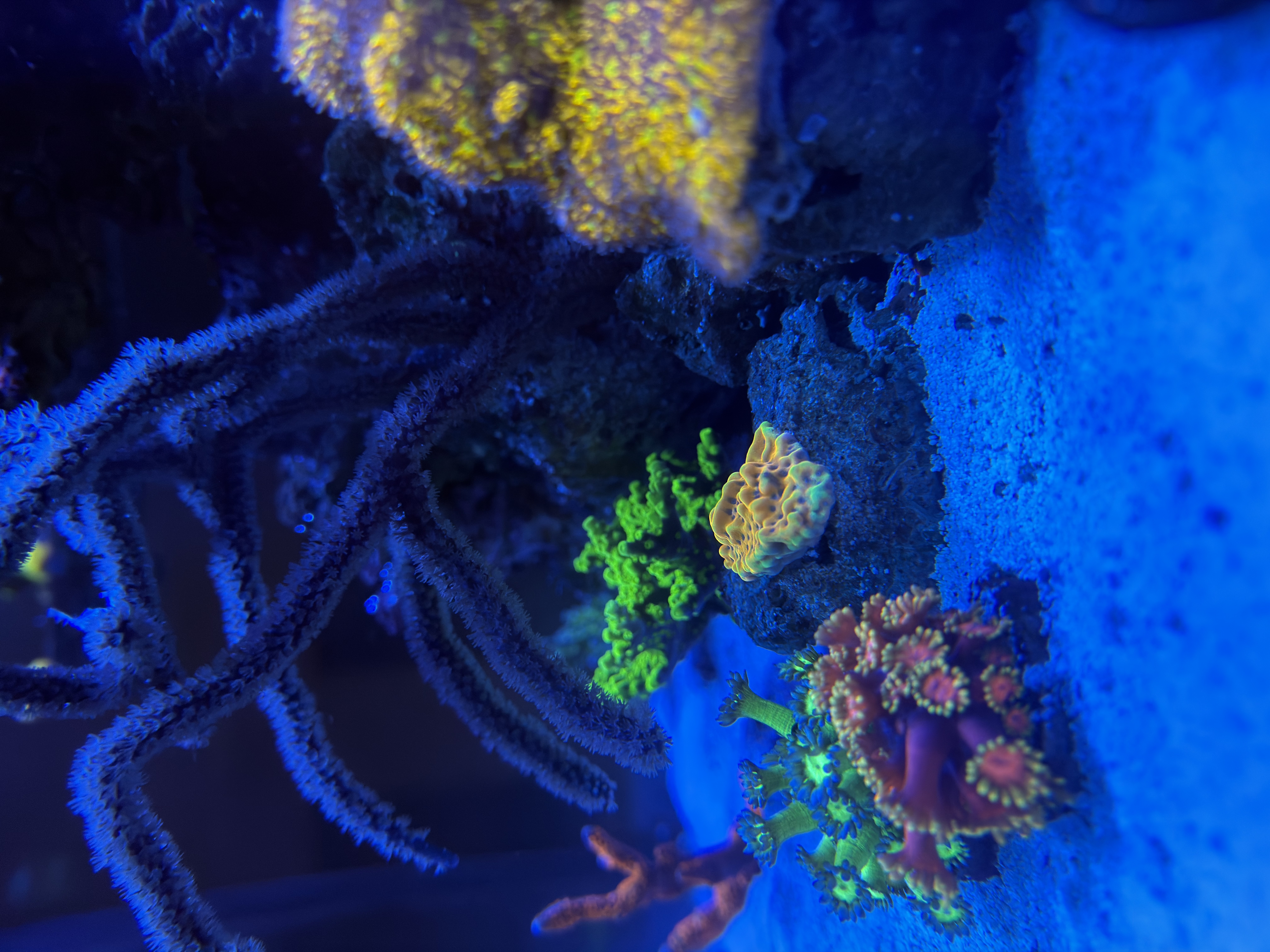 De er nu ikke helt væk, og har også lidt cyanobakterier endnu, men tør bestille nye koraller nu. Selv Tenius begynder at vise sig fra den positive side