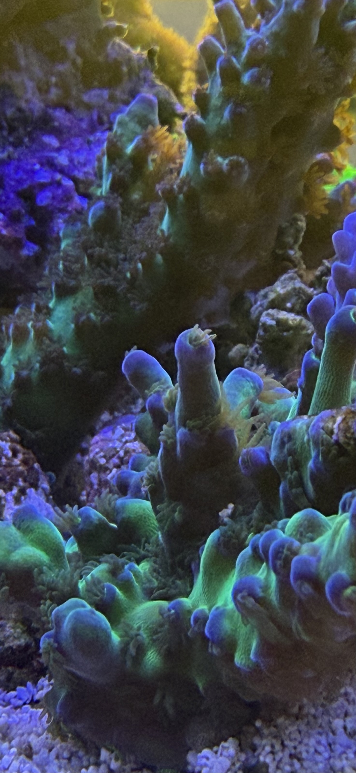 De er nu ikke helt væk, og har også lidt cyanobakterier endnu, men tør bestille nye koraller nu. Selv Tenius begynder at vise sig fra den positive side
