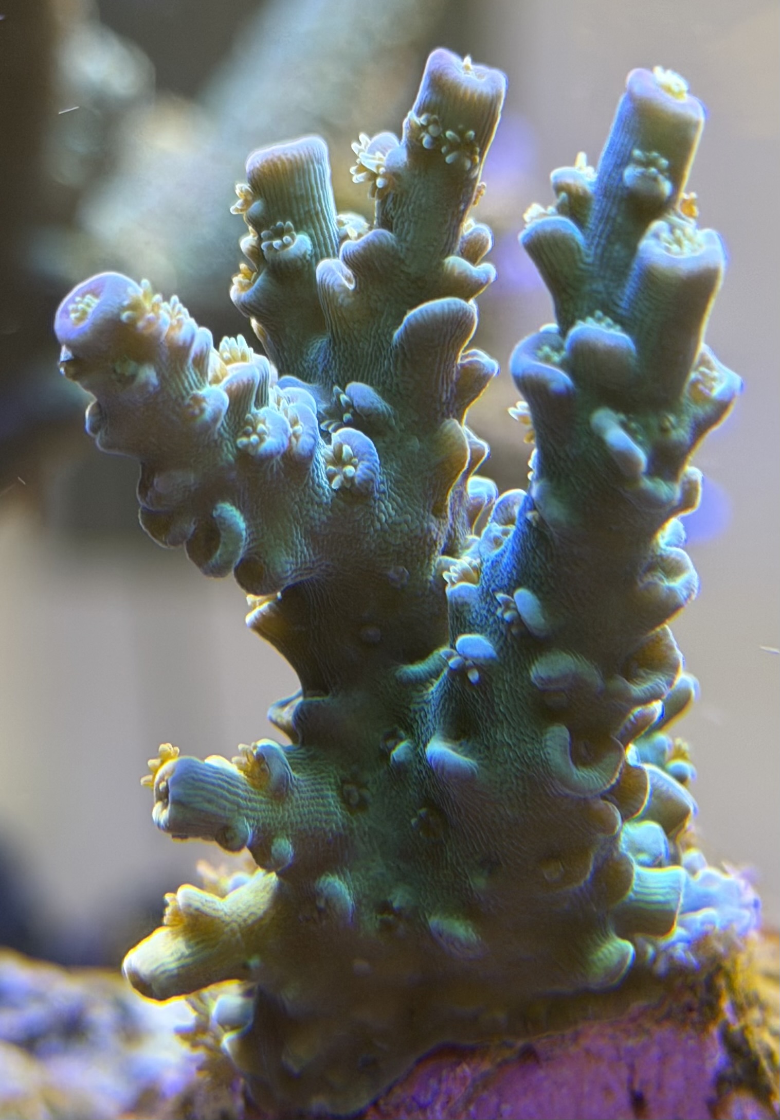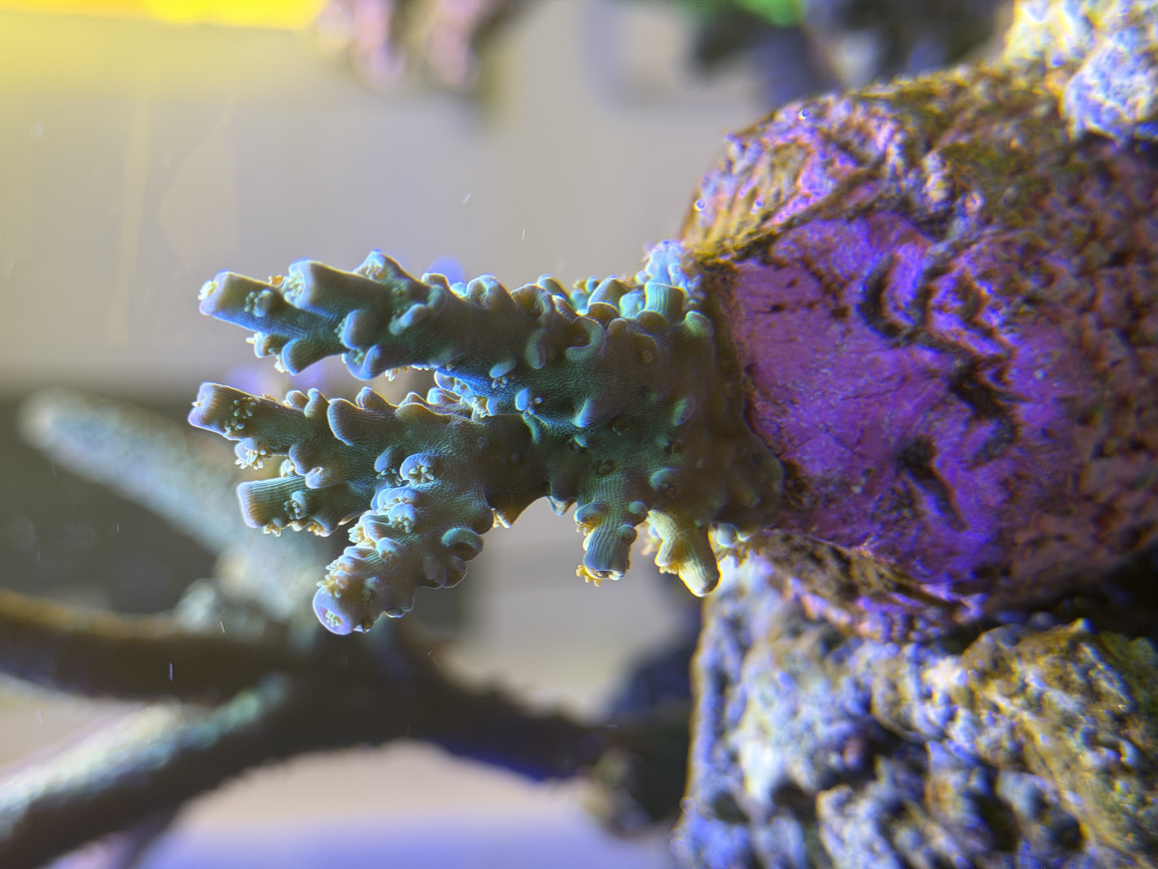 Der er dog noget vej endnu for alle farverne kommer igen, men min Acropora SR Moonwish Ultimative viser virkelig gode tegn på vækst igen