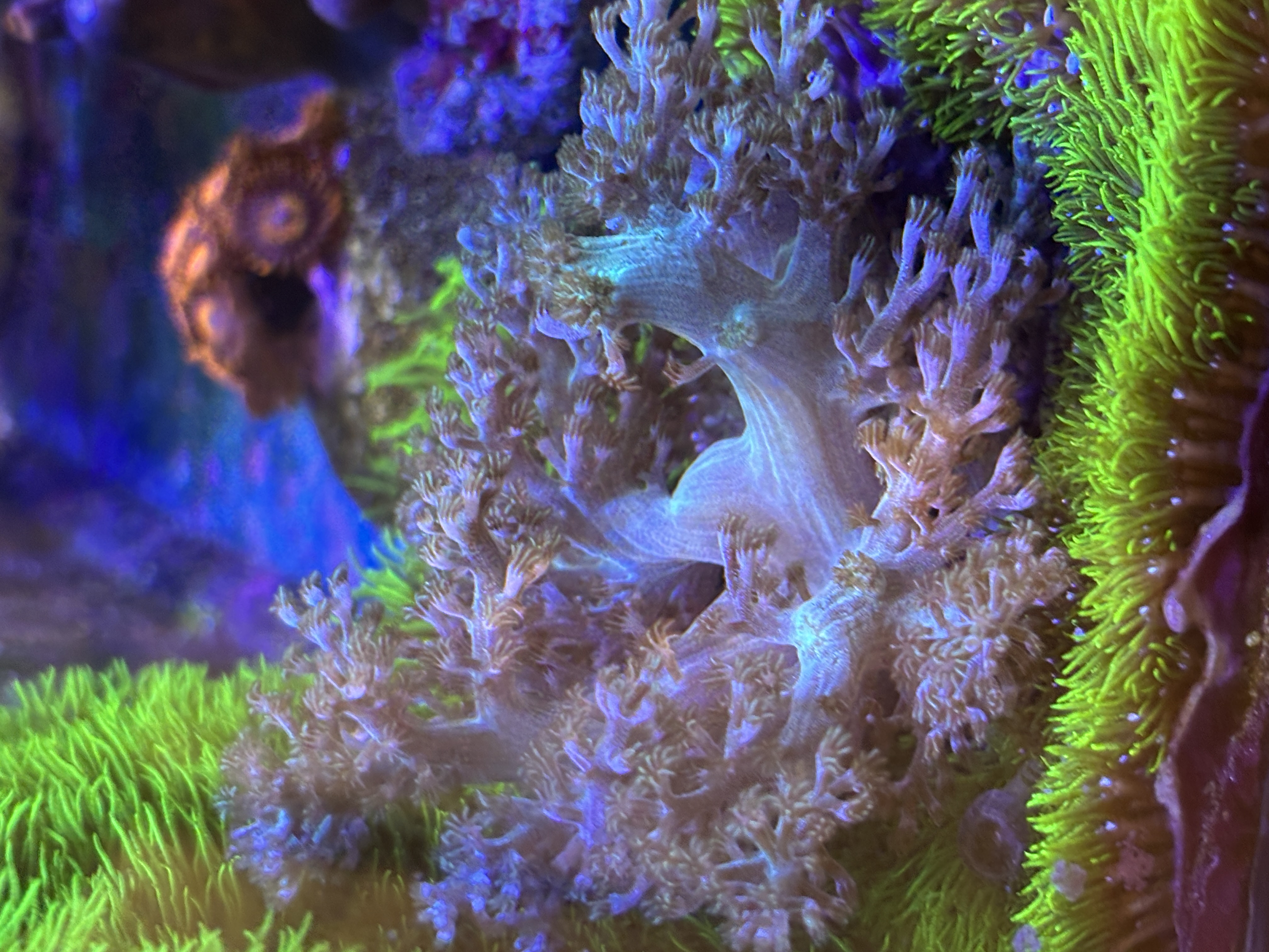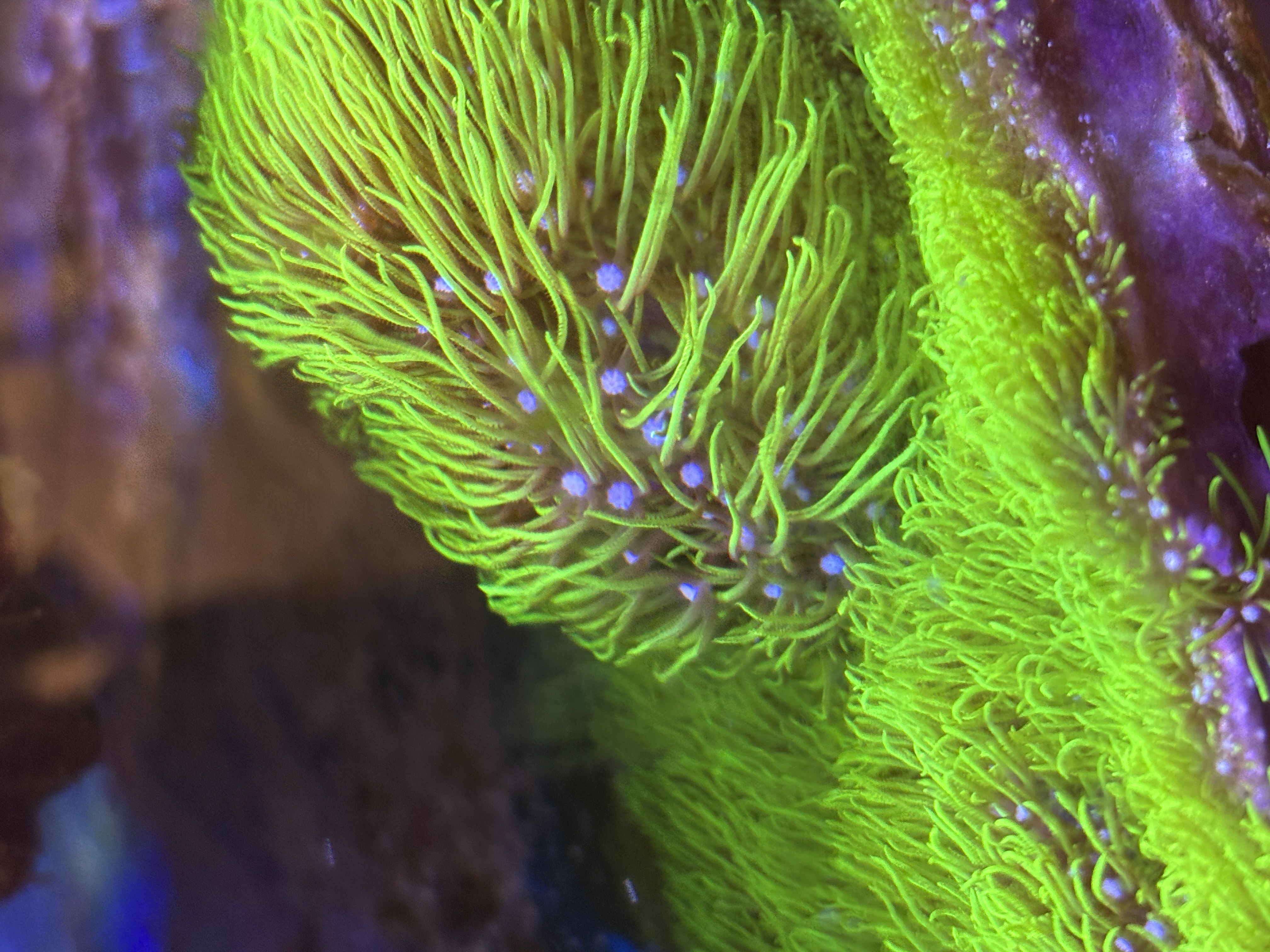 Ukendt blødkoral (lyse gul/grøn) gule spidser 3-5 cm 40 kr - 5-8cm 70 kr