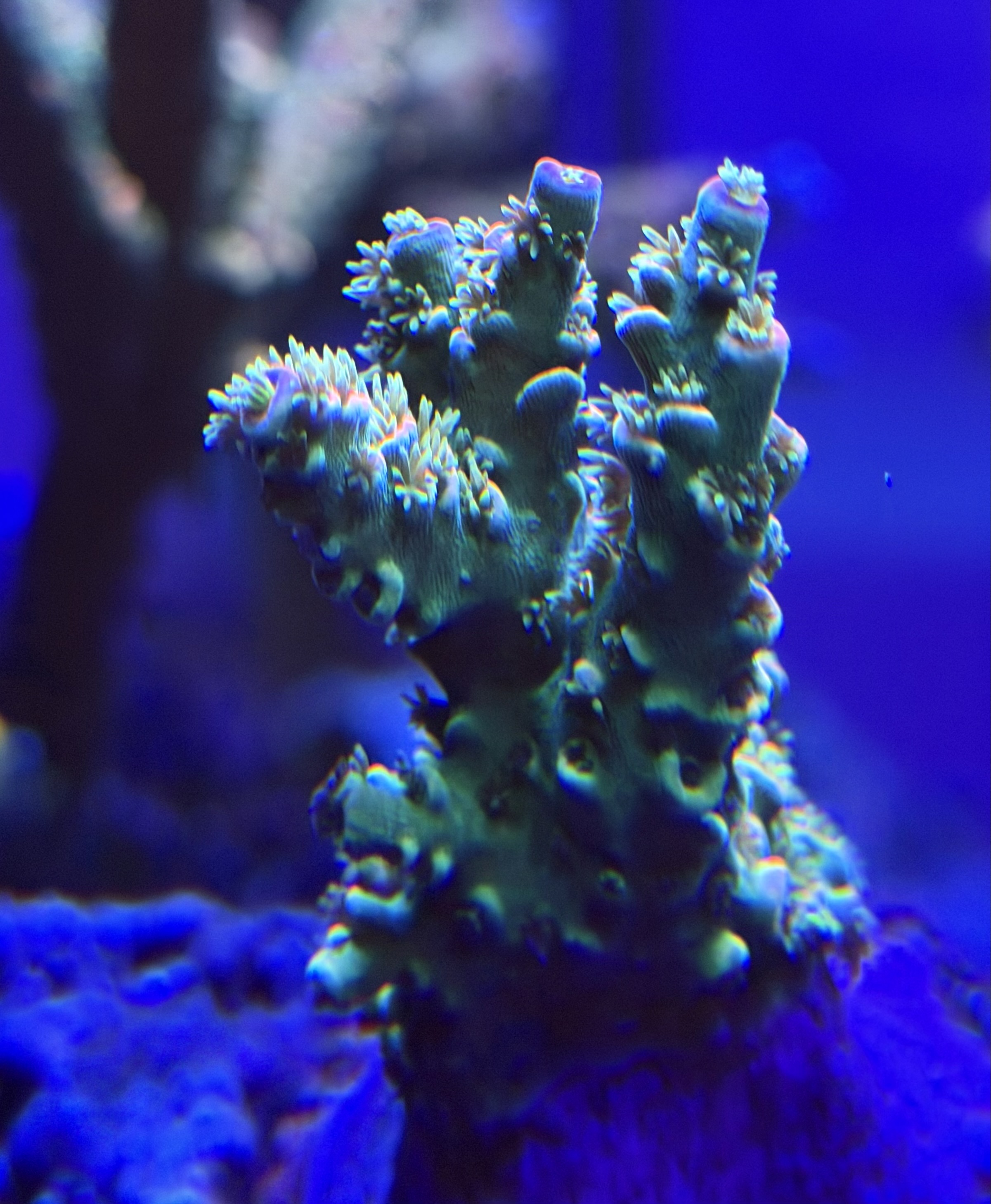 Mit po4 falder stadigvæk, og mit no3 ligger stabilt omkring 10 mg/l og ser ud til mine koraller elsker det. De viser ihverfald masser af polyp udvidelse og farver langsomt op. Væksten er stigende da jeg har været nødsaget til at hæve til 15l/dagligt