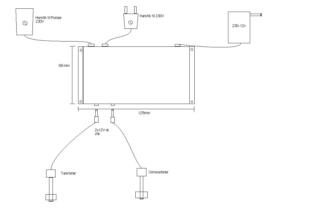 Et lille forslag til strømforsyningen 220 til 12V kunne du jo vælge en der kunne indbygges i kassen, så slipper du for at skulle have plads til 2 hanstik.
