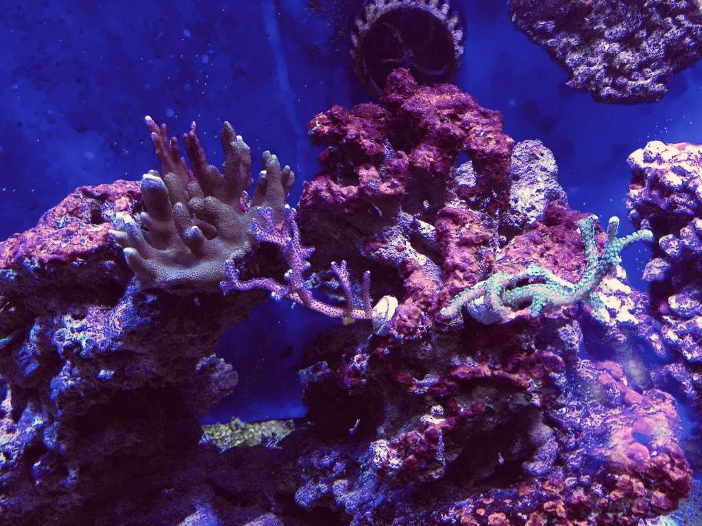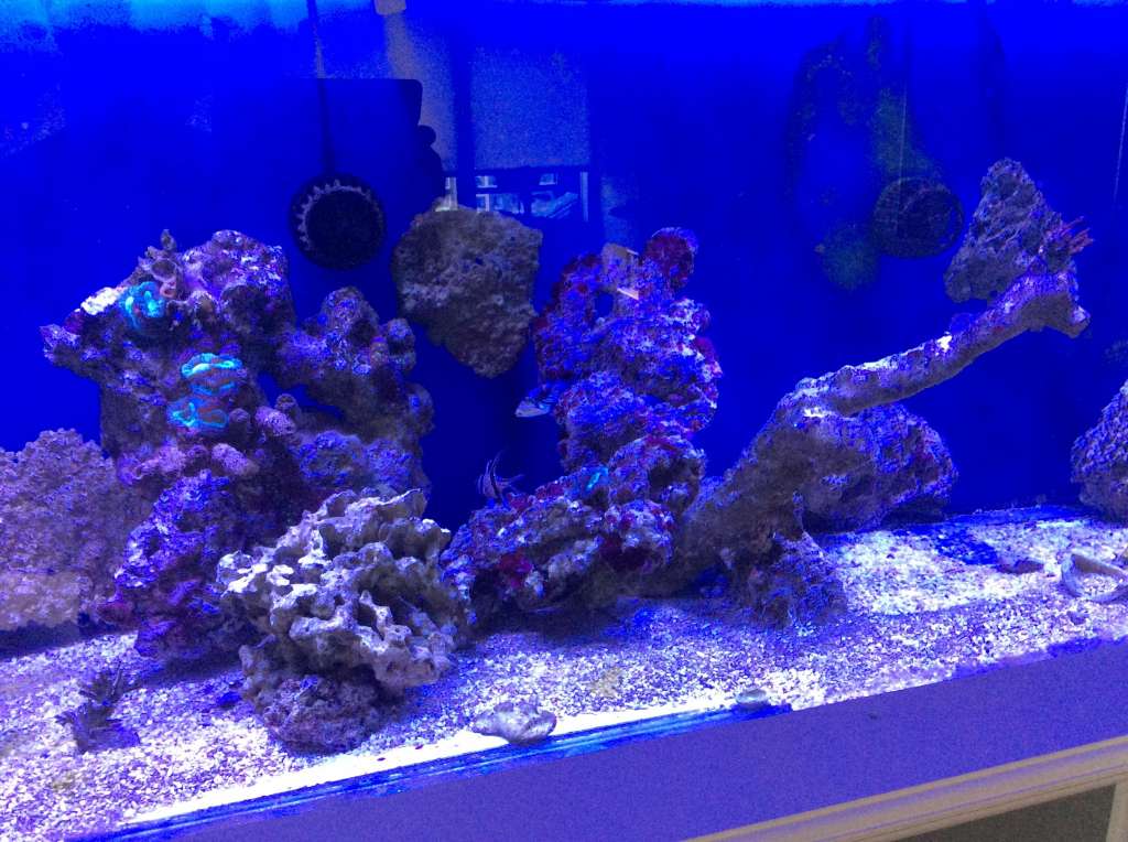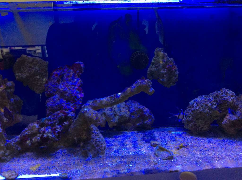 Jeg havde den lille søjle der kørte, i gennem pausen, med en hel del sten i, fik LS i fra klovnefisken og lidt fra Decocean = fra 2 forhandlere, så hentede jeg nogle meget indkørte sten ved Trine/Joel, hentede lidt meget indkørte sten v koralfarmen (noget af mine gamle) dertil en røvfuld tørre “nye” sten og nogle af mine gamle der havde ligget tørt i 4 md og derefter blev udvandet med, først lidt klorin og derefter med det der lac... et eller andet halløj der suger Po4 ud af stenene. Så, en god blanding af nyt og gammelt og fra mange systemer