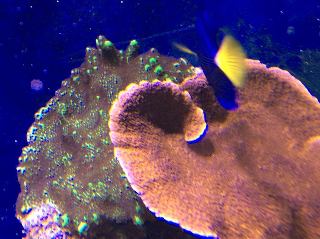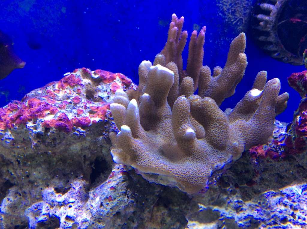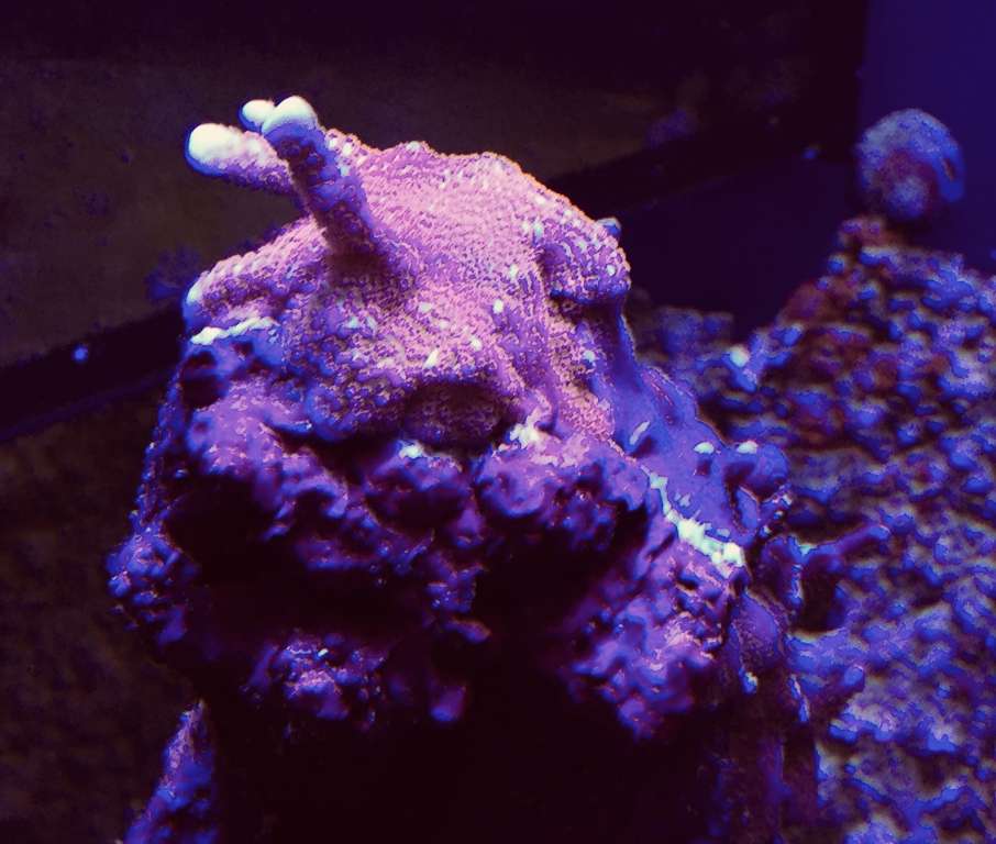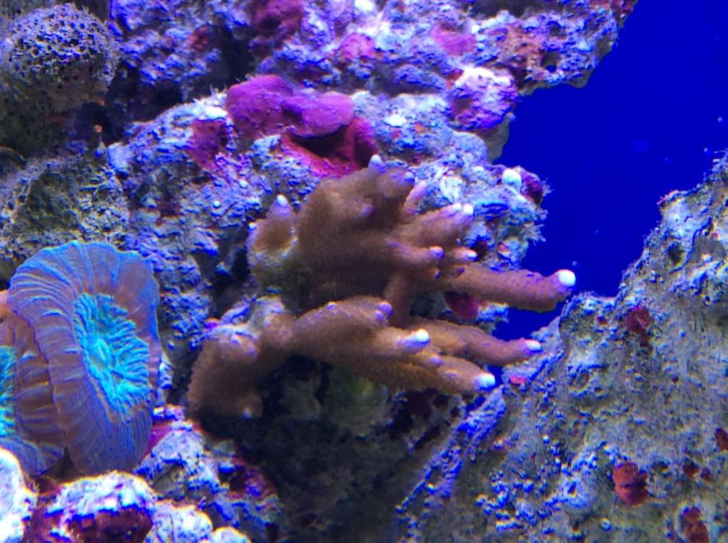 Hmmm, underlig måde dine koraller vokser på, mine vokser og vokser på stenen de er limet på til de begynder at vokse nedaf, derefter kommer der skud. Min "Forest Fire" har en fod på ø8 cm eller noget inden den begyndte at skyde.