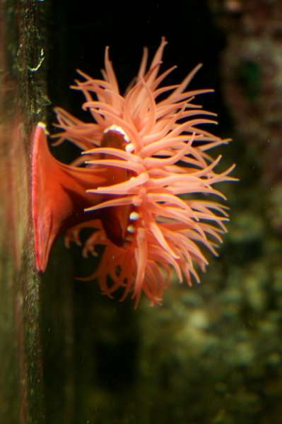 Ukendt anemone art, den er næsten helt orange og har tynde tentakler.