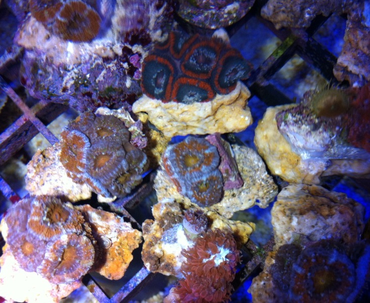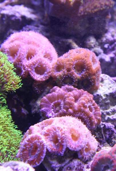 @ Den blå Scolymia Det lyder godt at din er ved at genvinde farven. Jeg har selv flyttet min og mine Welsophlylliaer (Trachophyllia) mere ud i lyset. De fik trods alt for lidt lys hvor jeg havde sat dem. De stod under et udhæng dannet af en Seriatophora, som har vokset sig så stor og tæt så der trængte for lidt lys ned til dem. De har bekommet Welsophylliaerne godt, mens den blå Scolymia ikke har genvundet sin farve.