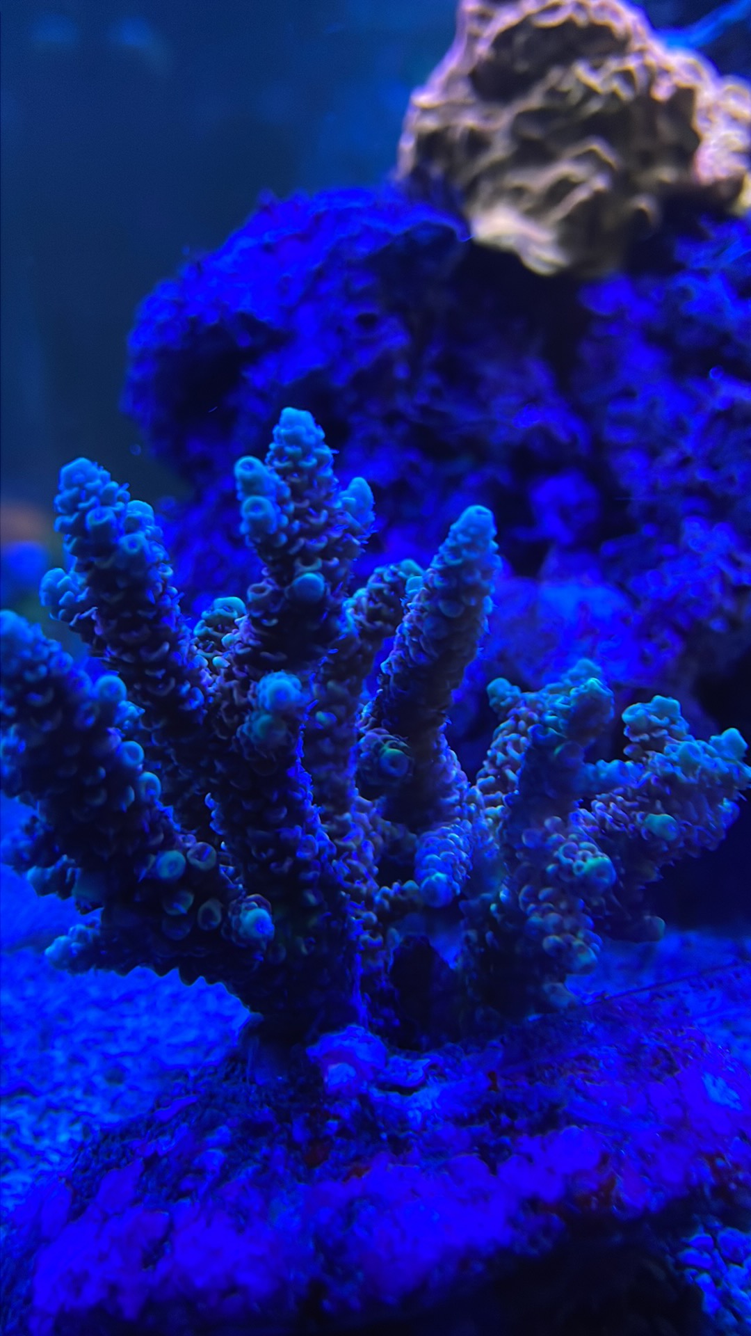 2 forskellige tenius rainbow like, 1 Bali homewrecker , 1 Acropora caroliniana samt 1 Acropora millepora