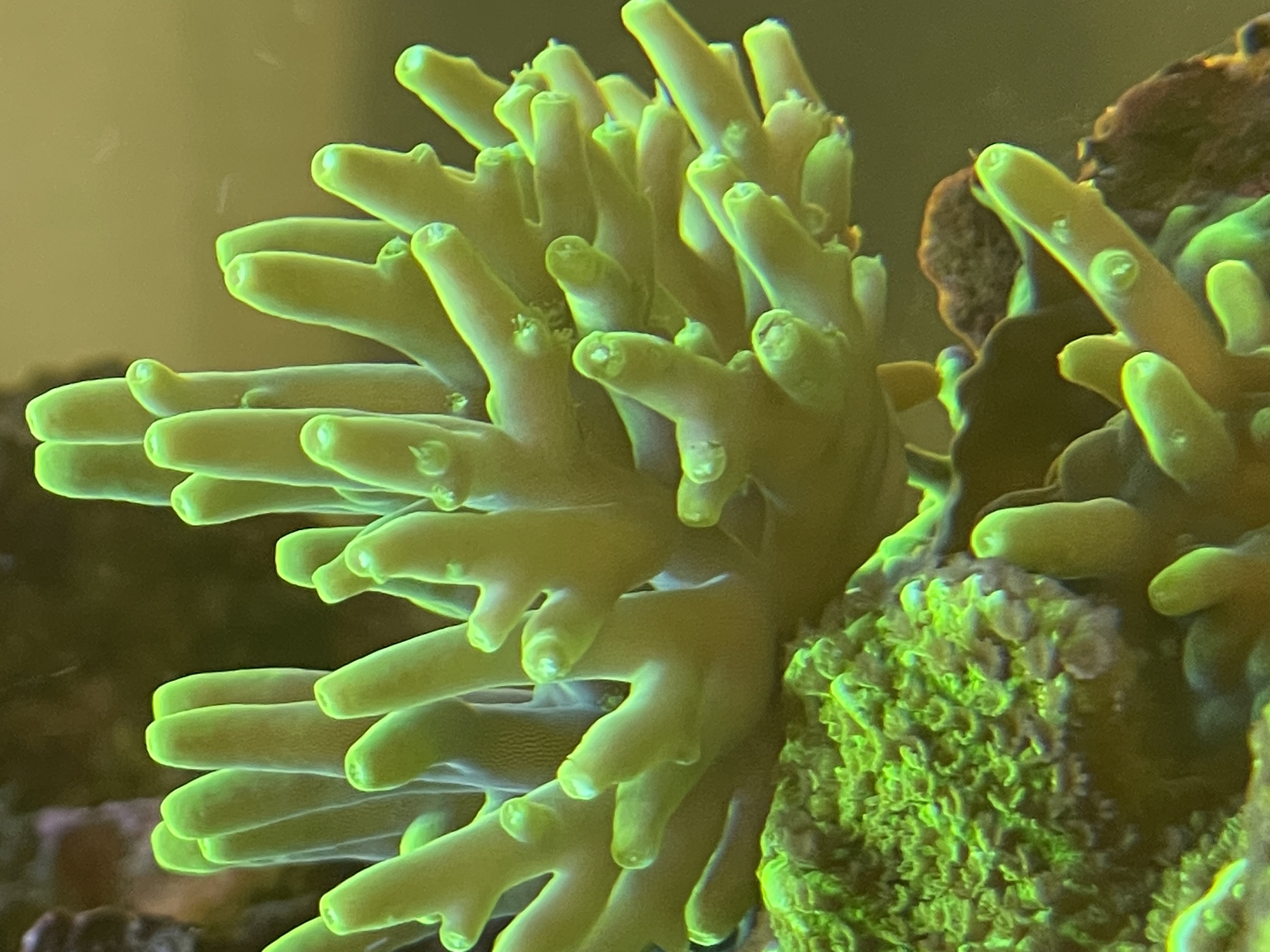 Mine 6 nye Acropora koraller er endelig begyndt at få væskspidser, men viser stadigvæk tegn på de har været stresset.