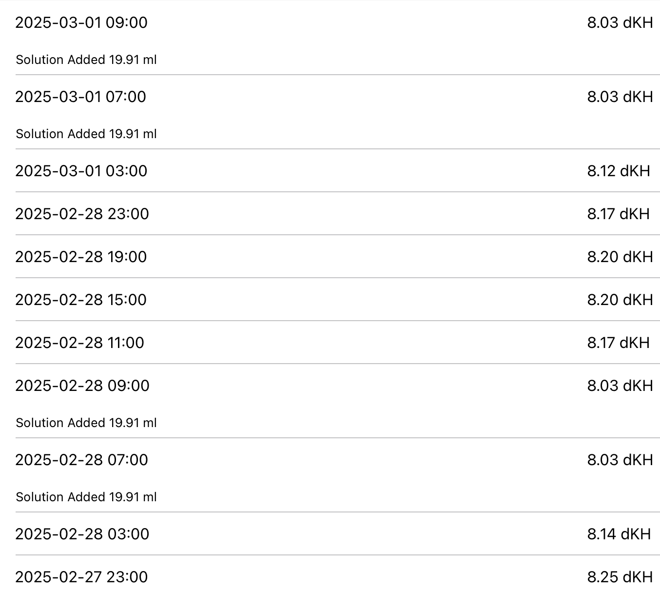 Tiden er hvis kommet til at begynde at regulere mere om natten for dosering af KH. Dosere ellers 5 ml/min kalkvand fra mixer.