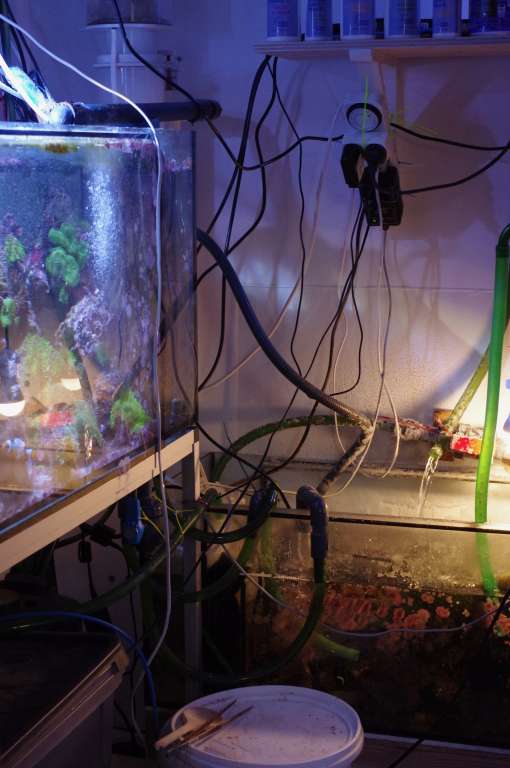 Jeg har planer om at koble et velkørende 250 liters akvarium på, for at gøre vedligeholdelsen og doseringen lettere. På den måde får jeg endnu flere ls på systemet og kan samtidig øge vandvolumen lidt. Men jeg går og venter på at nitraten falder lidt så den matcher den i det store akvarium.