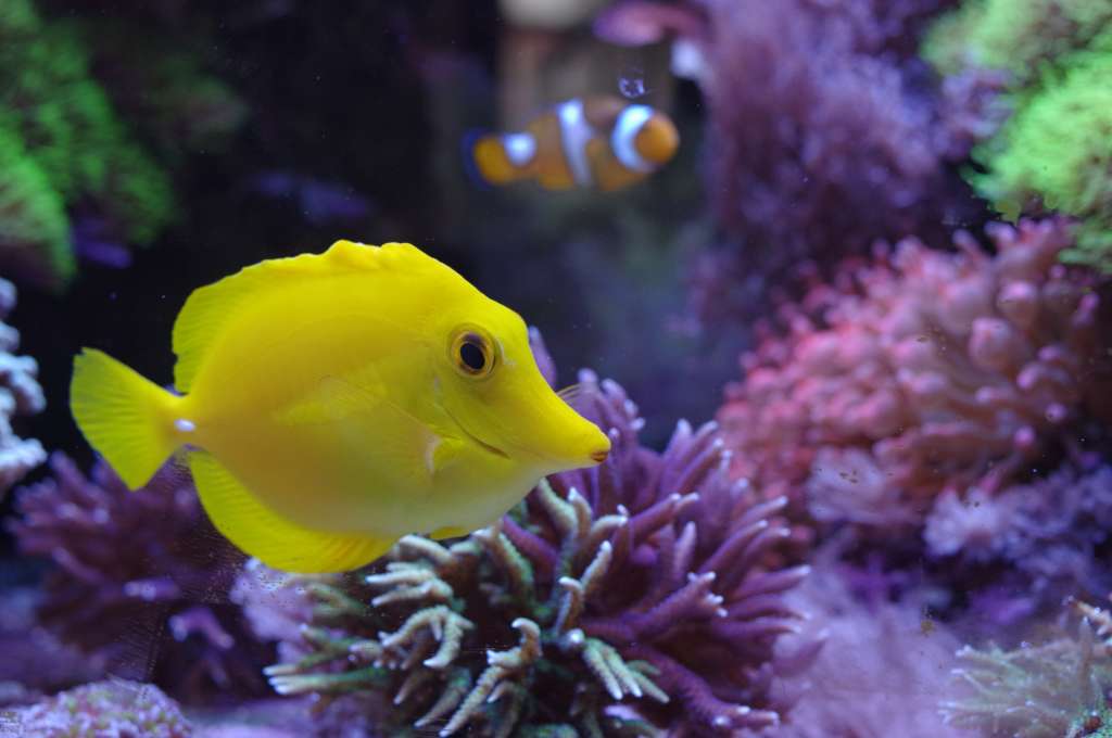 Det lykkedes mig at fange den gule kirurg og gramma loretto fra det lille akvarium og få sat dem i det store. Jeg har også en yellow belly gående som jeg meget gerne vil have i det store, da den er ved at blive for stor, men jeg er næsten 100% sikker på at den anden blå palet ikke tager pænt imod den. Så jeg må overveje en smart måde at introducere den på, så de ikke kommer op at toppes.