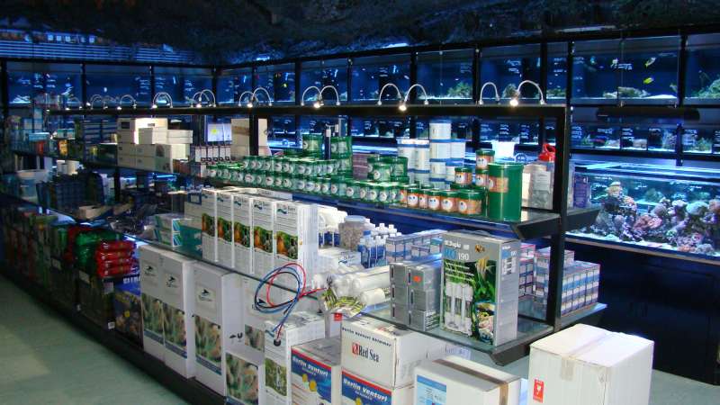 butikken var vel på størelse med en almindelig dyrehandel, som så var delt på midten, med saltvand på den ene side og ferskvand på den anden.