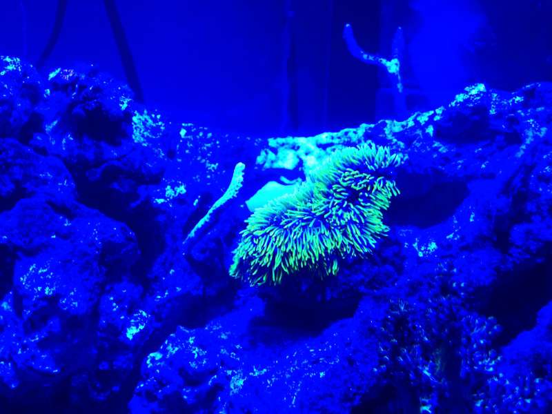 Om aften når det blå kun lyser så er alt sort mede i baljen og så står den grønne koral bare og lyser alt op! Det er pisse flot bare ik på billeder:) men ser om jeg kan skaffe et ordentlig cam:)