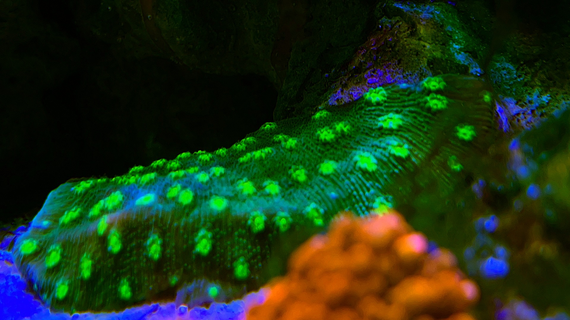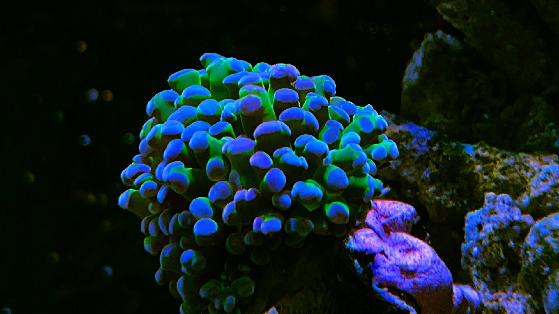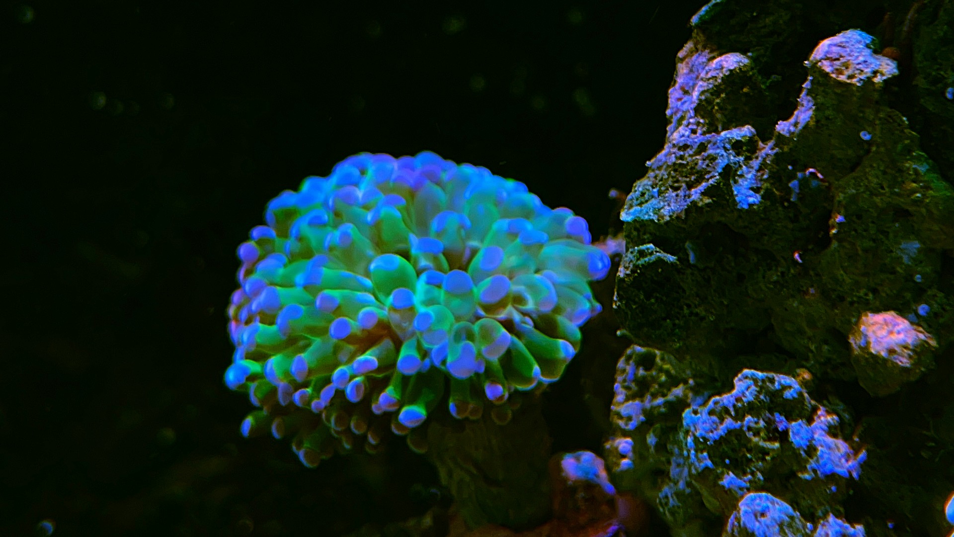 Homophyllia klumpen overvejer jeg at skille lidt ad. Den nederste gule er pænt “træt” kan man se….. Jeg giver dem lige lidt tid og hvis den ikke retter sig så må jeg igang m hammer og mejsel 👍🏼