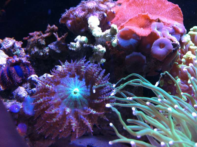 Jeg tror at du har ret i at caulastreaen får for meget lys. Den gik amok og voksede helt vildt da jeg havde den i et fluval edge med sparsom belysning. Har flyttet den ene om på siden af stensætningen og den ser en smule bedre ud, men ikke meget. Dog er den skærmet for kraftig belysning. Hakkede den døde acro af stenen. Den var ellers groet godt fast over det sidste år, men sådan kan det jo gå. Efter turen til Thailand, samt inspiration fra andre rev jeg har besøgt rundt om i verden, har jeg besluttet at jeg gerne vil ide lidt mere i sps. Har fundet nogle fine nano sps akvarier, med nogenlunde samme udstyrsliste som min. Jeg overvejer derfor at tømme akvariet og starte forfra. Føler ikke at jeg har kontrollen længere. Skiver og zoas/paly's lever deres eget liv og vokser ustyrligt alle steder. Der ligger en del detritus på bunden og bruger jeg kraftigere cirkulation trækker hammerkorallerne og Duncan sig sammen. Lyset er for kraftigt til caulastrea men godt til de andre koraller. Baljen er desuden for lav til at jeg kan rykke misfornøjede koraller ned på dybere vand hvor lyset ikke er så kraftigt. Kenyatræet, anemonen og også de andre koraller brænder desuden alt omkring sig. Alle disse modstridende faktorer gør at jeg har et ønske om at ensrette baljen, således at korallerne deri stiller samme krav. Kraftig belysning og god cirkulation. Dvs sps, men det skal være hurtigtvoksende og sps i den nemmere og billigere ende.