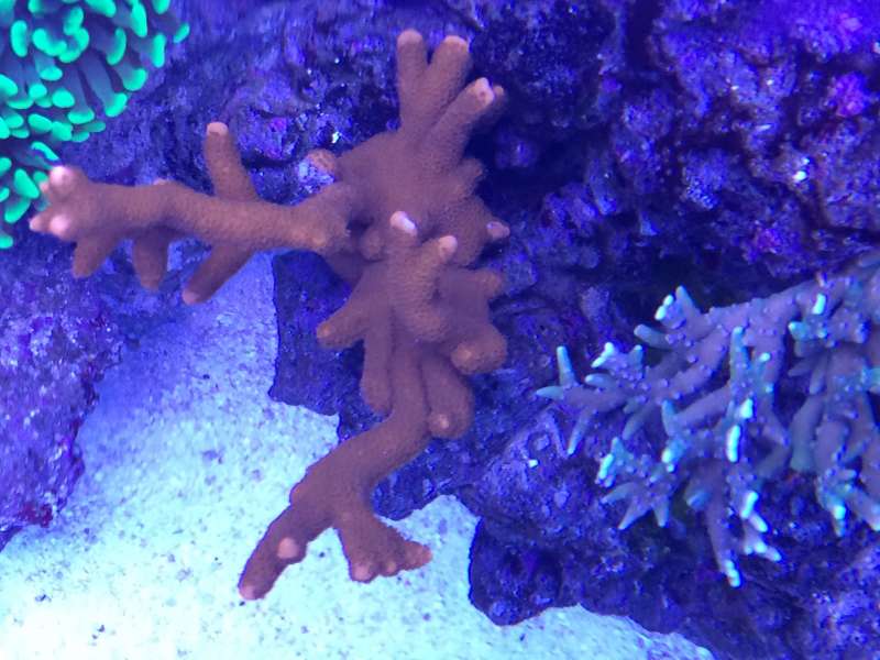 Mener dette er en anacropora spinoca.... Svært at se, men spidserne er ved at blive en lille smule grønne..... Spændende... Andre bud på hvilke anacropora det er? Den vokser forøvrigt fint.