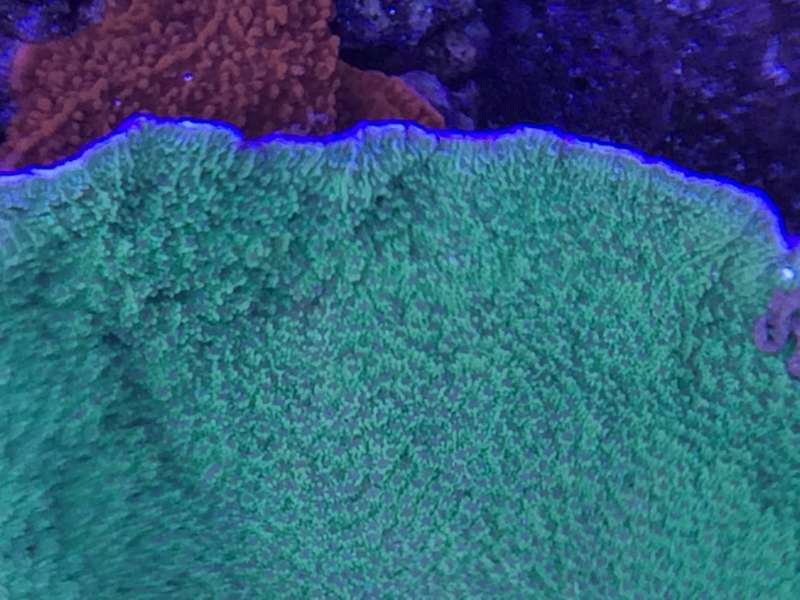 Min koral (som er den Charlie har fået et fragment af) er grøn i bundfarven og verrucae har samme farve.