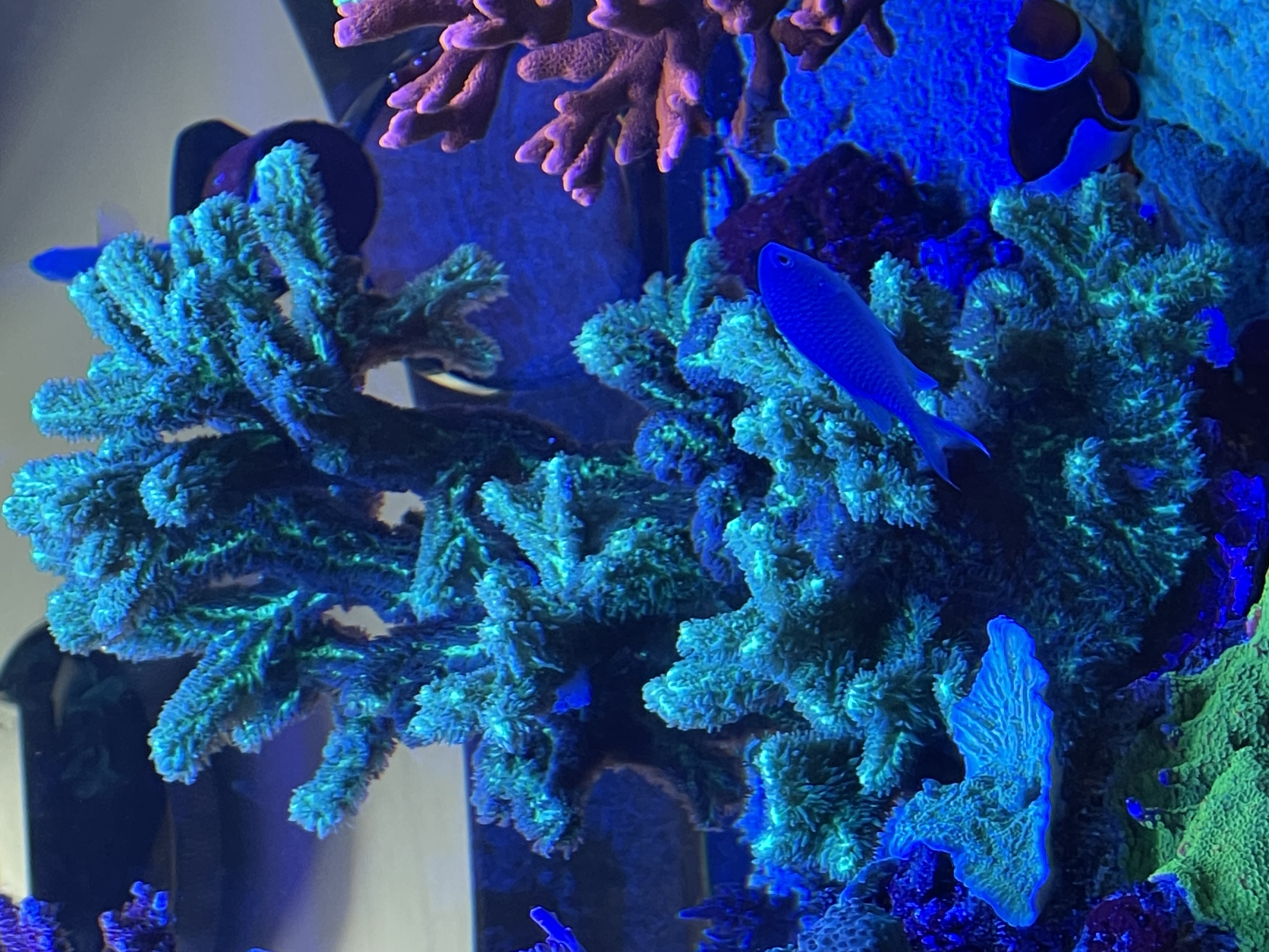 Skummeren kom op at køre i dag, så roen sænker sig over mig. Desværre sker der altid lidt på revet, og mit rescure koral projekt, blev lige ramt af naboen i kampens hede. Den har godt nok været udsat for lidt, men lad os se om den ikke kommer sig igen.