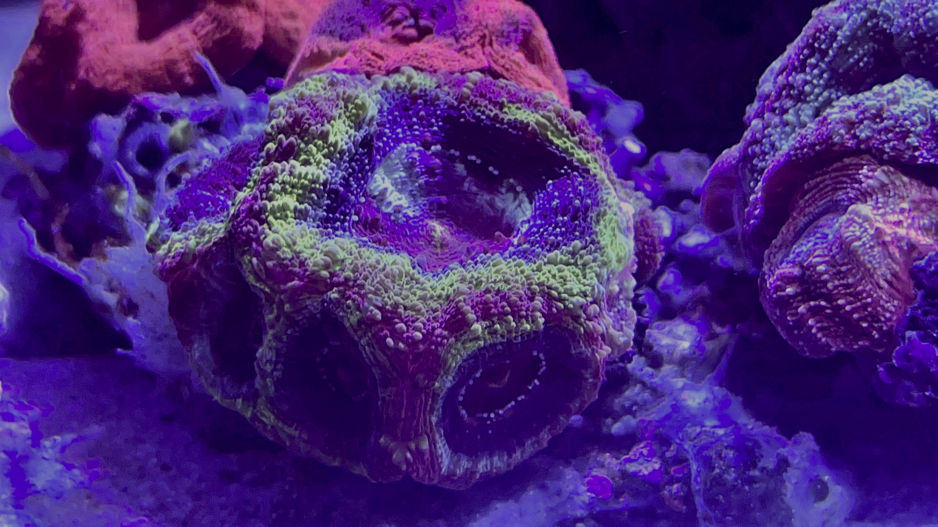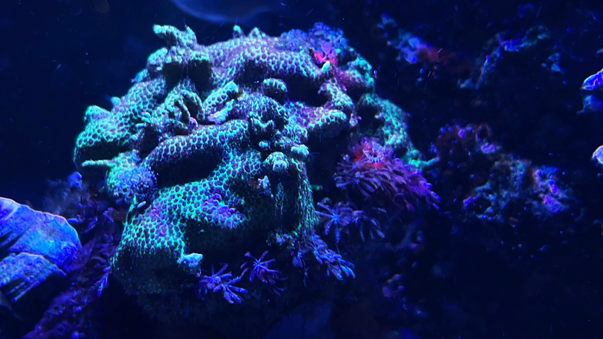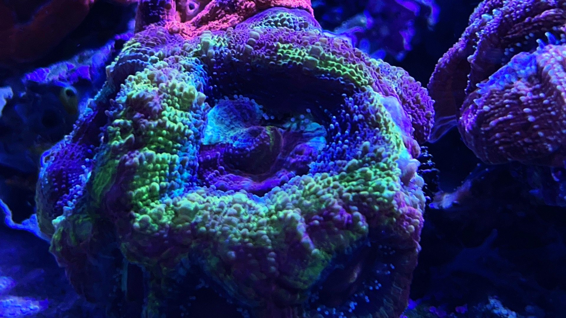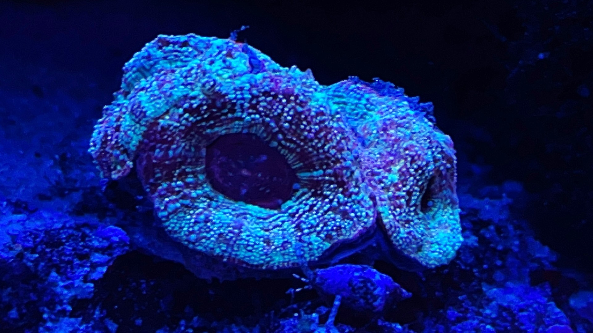 Røgen har lagt sig efter jeg fik fanget “Olivia” ind og afleveret hende ved Dan igen. Så nu begynder homophyllia at blive en smule “fleshy” igen. De reagerer desværre ikke ret meget på foder endnu (det gjorde de BIG time, før sommerferien) Håber det snart kommer igen