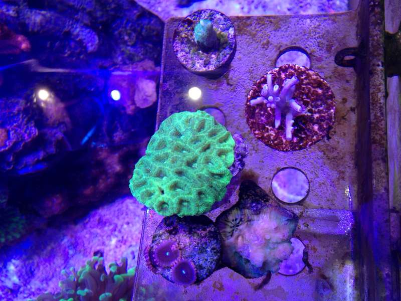 Men jeg får mig da en skriggrøn Favia, en lilla Acropora lokani samt en rimelig stor Acropora valida med grøn stamme, blå vækstspidser og blå polypper