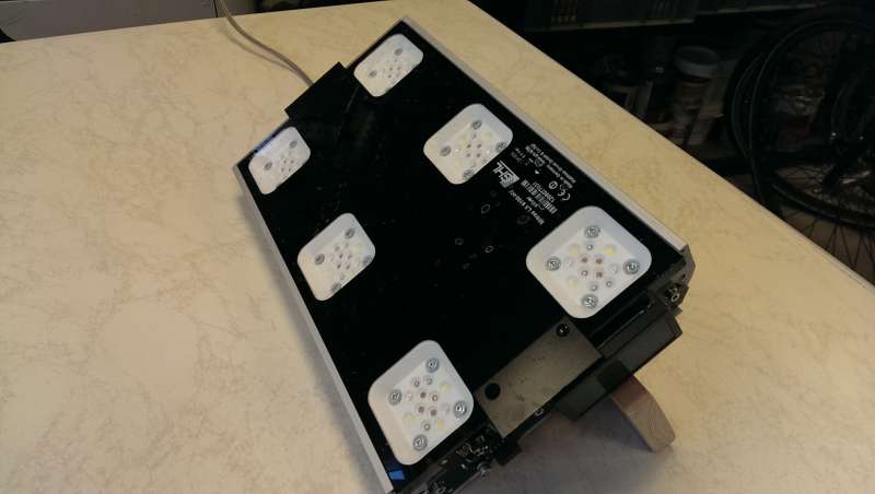 Så blev det tid til at give mine 5 Mitras LED lamper lidt "service", de har nu kørt 1 år og 4 måneder, og der var efterhånden kommet en tynd hvid film på dækglasset foran de specielle LED clusters, som lampen indeholder 6 stk af. Samtidig kunne jeg finde ud af hvor meget støv der evt. havde samlet sig i lamperne, og der blev jeg noget overrasket, der sad kun en tynd støvbelægning på selve vingerne på de 4 ventilatorer som sidder i lamperne, hvilket let kunne klares med en forsigtig tur med trykluften. Frontglasset fik en tur i opvaskebaljen med alm. opvaskemiddel.