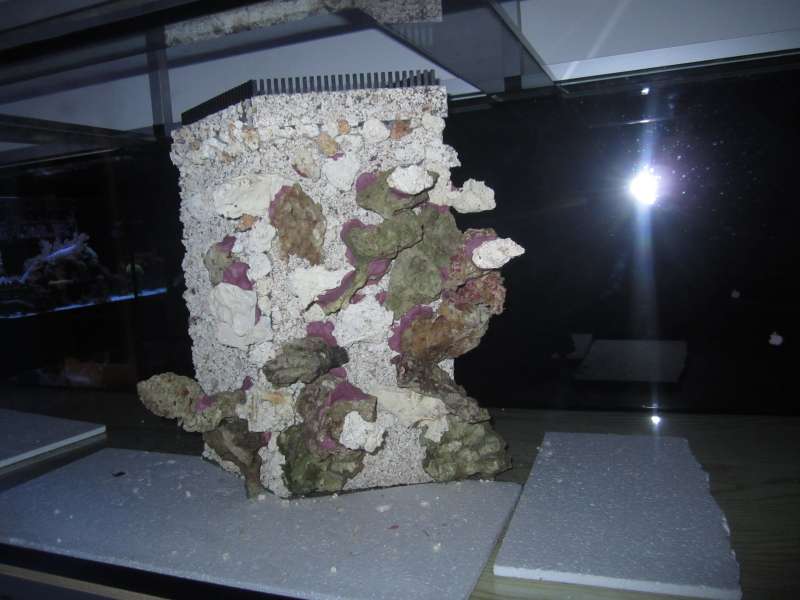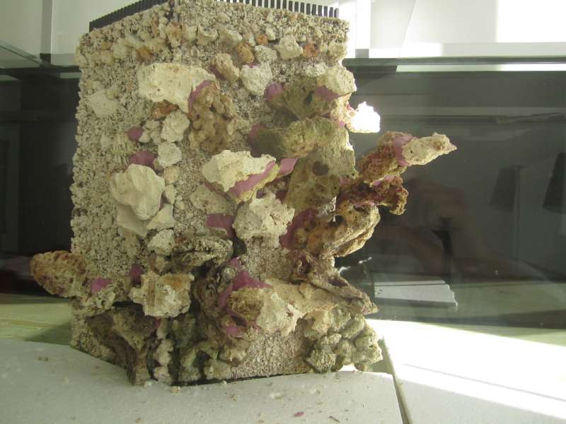 Yeps... den bliver dækket hele vejen rundt - da man kan se akvariet fra 3 sider.. plus der skal også monteres koraller på bagsiden af overløbet. Elsker når man skal gå lidt på opdagelse i akvariet, og ikke få det hele serveret med første øjekast, men at man skal kigge ind fra siden for at få øje på en flot koral etc. Det gør også at søjlen kommer til at virke mere "naturlig" - at man kan se koraller der kun stikker en smule ud fra bagsiden og koraller placeret hele vejen rundt. Vil gerne undgå en "forside" og en "bagside" af overløbet.. men naturligt hele vejen rundt.