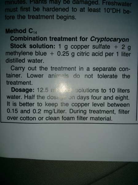 Nu hvor Peder bringer det på banen, vil jeg lige vise tre billeder taget fra TFH forlagets bog "tropical fish diseases" fra 1992. Der er sket meget siden da, og man skal nok sørge for at læse de links som NielsK lagde op i går eller var det tidligere, så man er klar over at det at bruge kobber ikke er ufarligt.