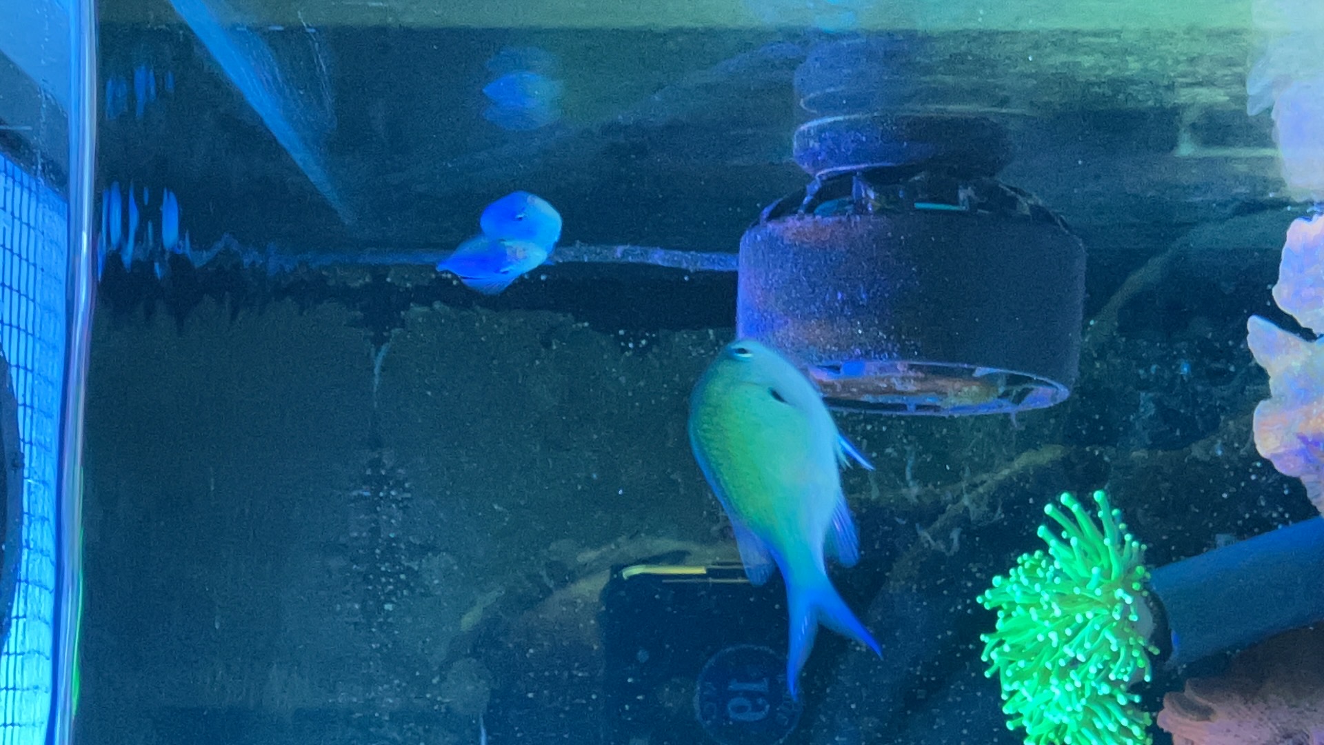 Nye beboere: en Oliven kirurg ungfisk og tre grønne Chromis☺️