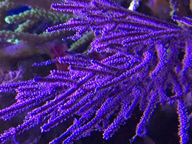 Den lilla har polypper ude hele dagen, mens den store, som modtager samme PAR som acropora etc, har kun polypper ude om morgen, og aften/nat - så mit lys er nok stadig pænt kraftigt