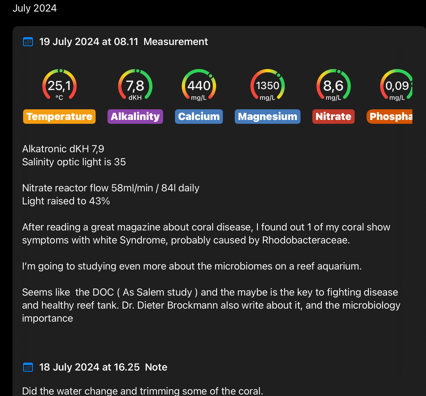 Spændende men hvad “gør” man så når WD opdages? Tilsætter du andre bakterier end Biodigest?Seniorreefer skrev: lør 20. jul 2024 09:40 Log: