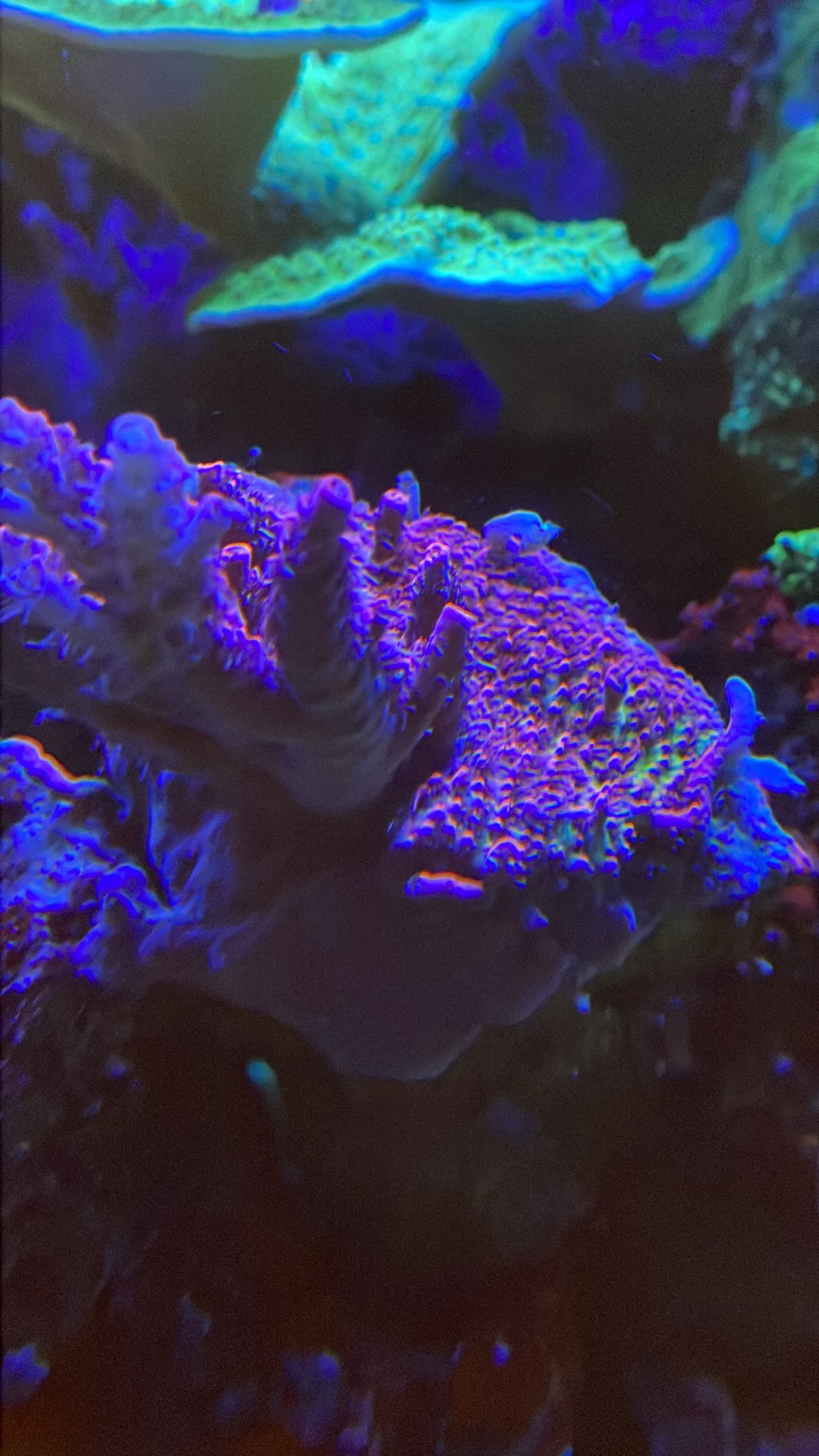 Jeg tog lidt aftens billeder i det blå lys, af nyere koraller, som endelig er begyndt at tage til i vækst