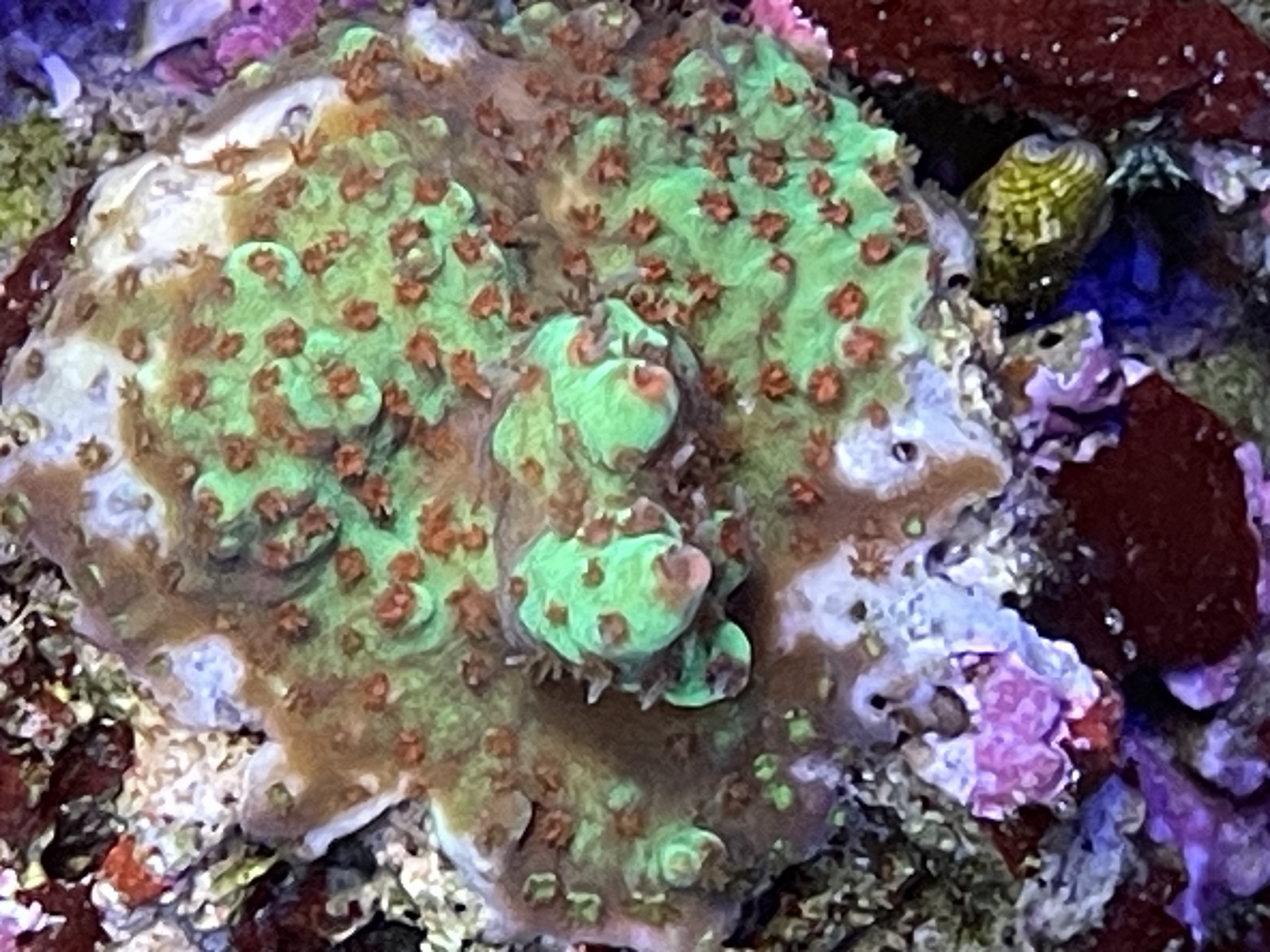 @Seniorreefer Når jeg ser på den koral med det hvide i bunden, synes jeg ikke det ser unormalt ud. Det kan være billedet der snyder.