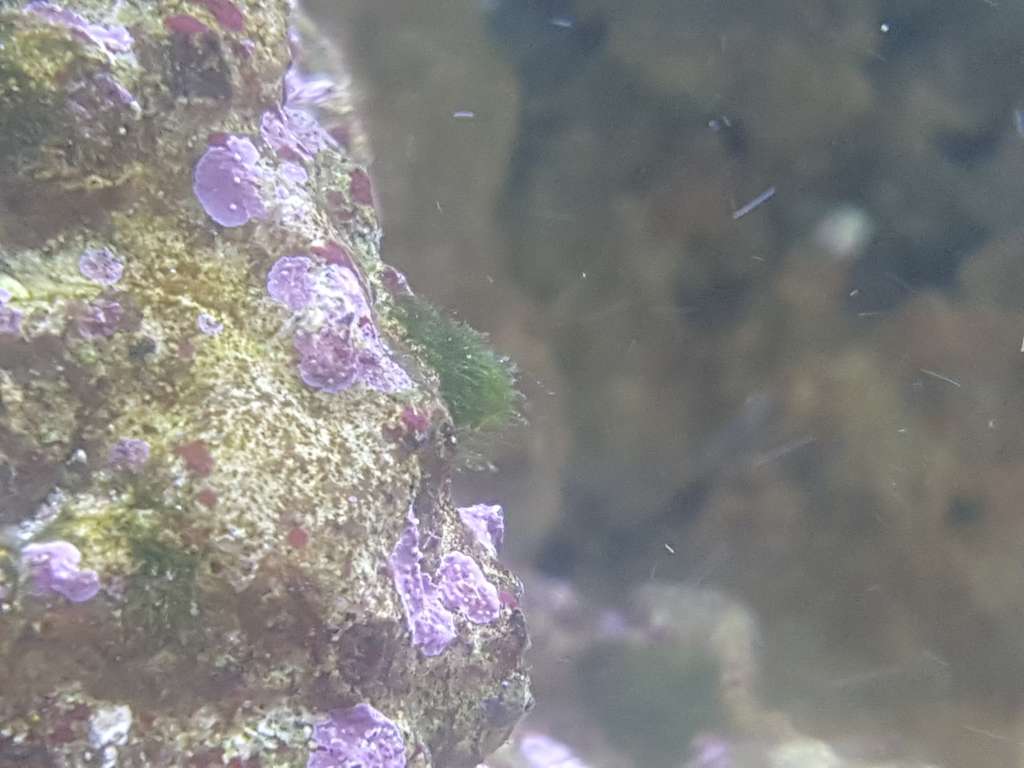 Billed 3 viser endnu en alge/bakterie, antager det er cyano, men er i tvivl da de vokser ekstremt langsomt og i små totte her og der i baljen. I morgen skal akvariet gøres rent så kommer jeg at fjerne dem manuelt.