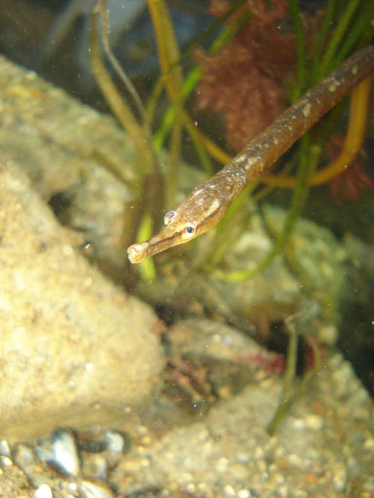 en Snippe på over 30 cm fra Hornbæk, den trives sammen med en tangsnarre Hele baljen Der er skiftet noget af sandet for at se om ålegræssens rødder trives bedre mellem sten, det har indtil videre været umuligt at holde ålegræsset.